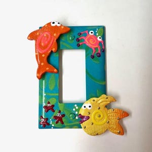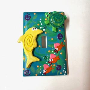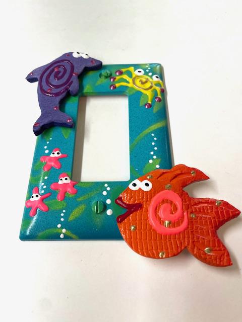 Plate Cover, Light Switch Cover, Whimsical Underwater aquatic light switch wall plate cover, whimsy fish room decor Hand painted light switch cover with fish embellishments.