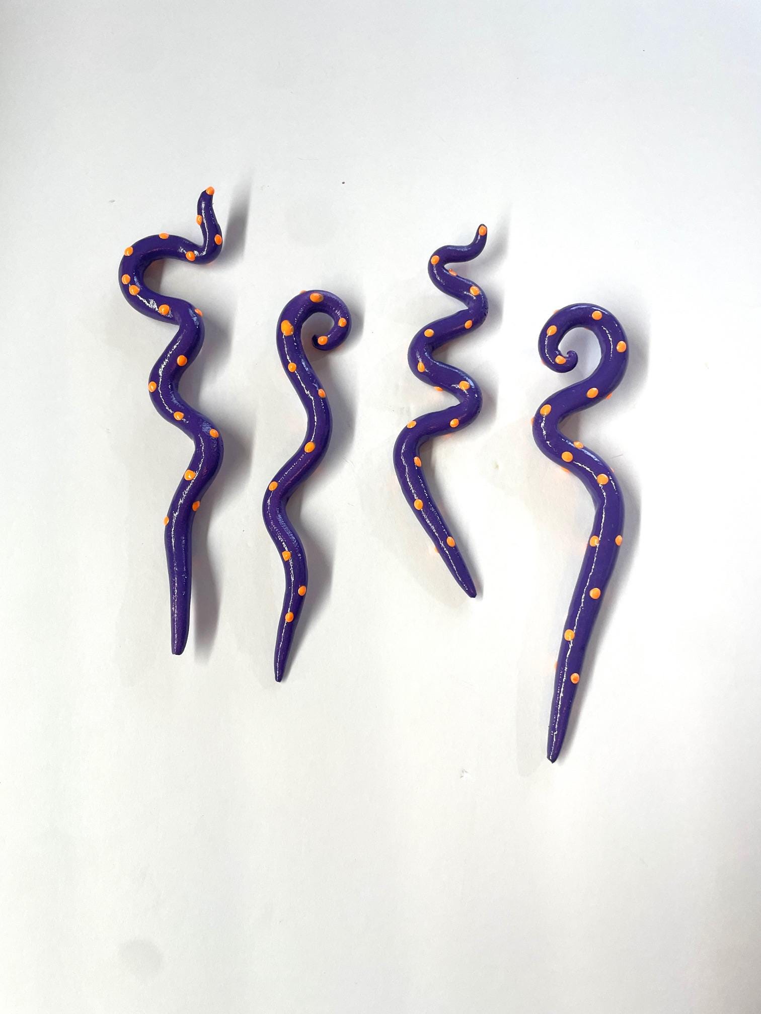 Each Octopus Tentacle is hand formed from a ball of stoneware clay. Once the clay is dry, the Whimsy Tentacles are fired in my kiln. As they're all handmade, no two are exactly alike. Imperfections are part of the charm!