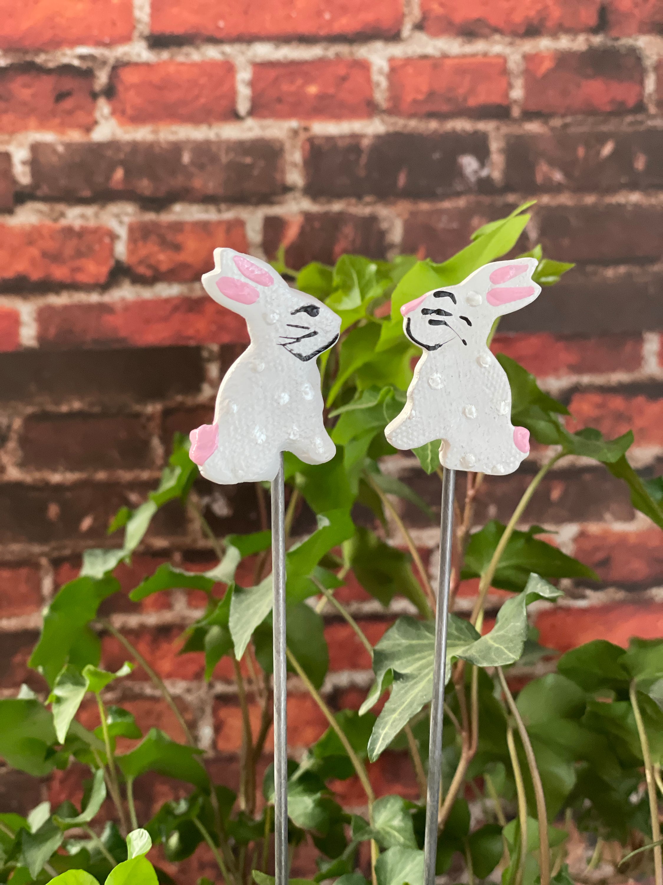 You will receive TWO Handmade Bunny Rabbits Garden Stakes for you or the green thumb in your life.