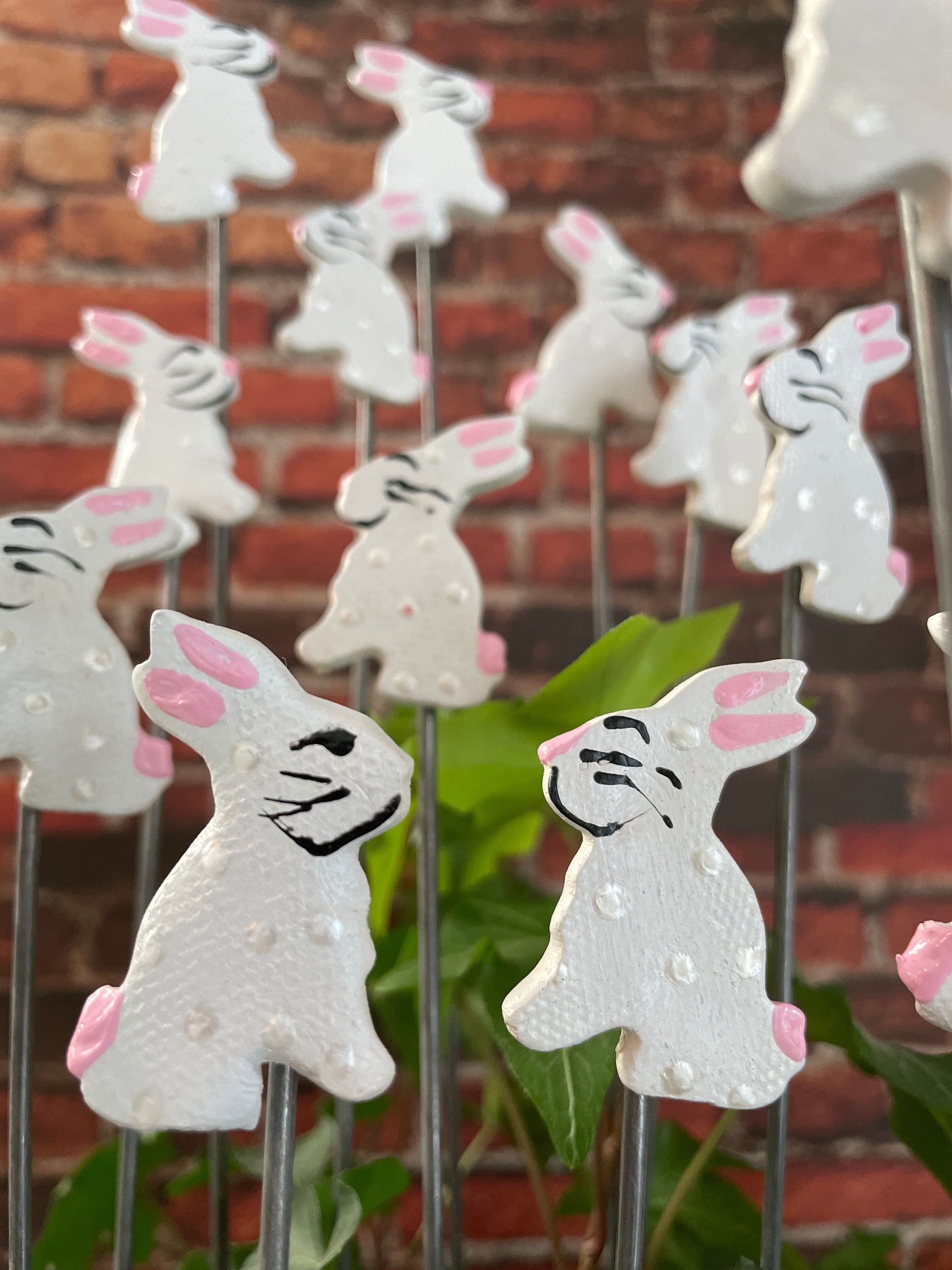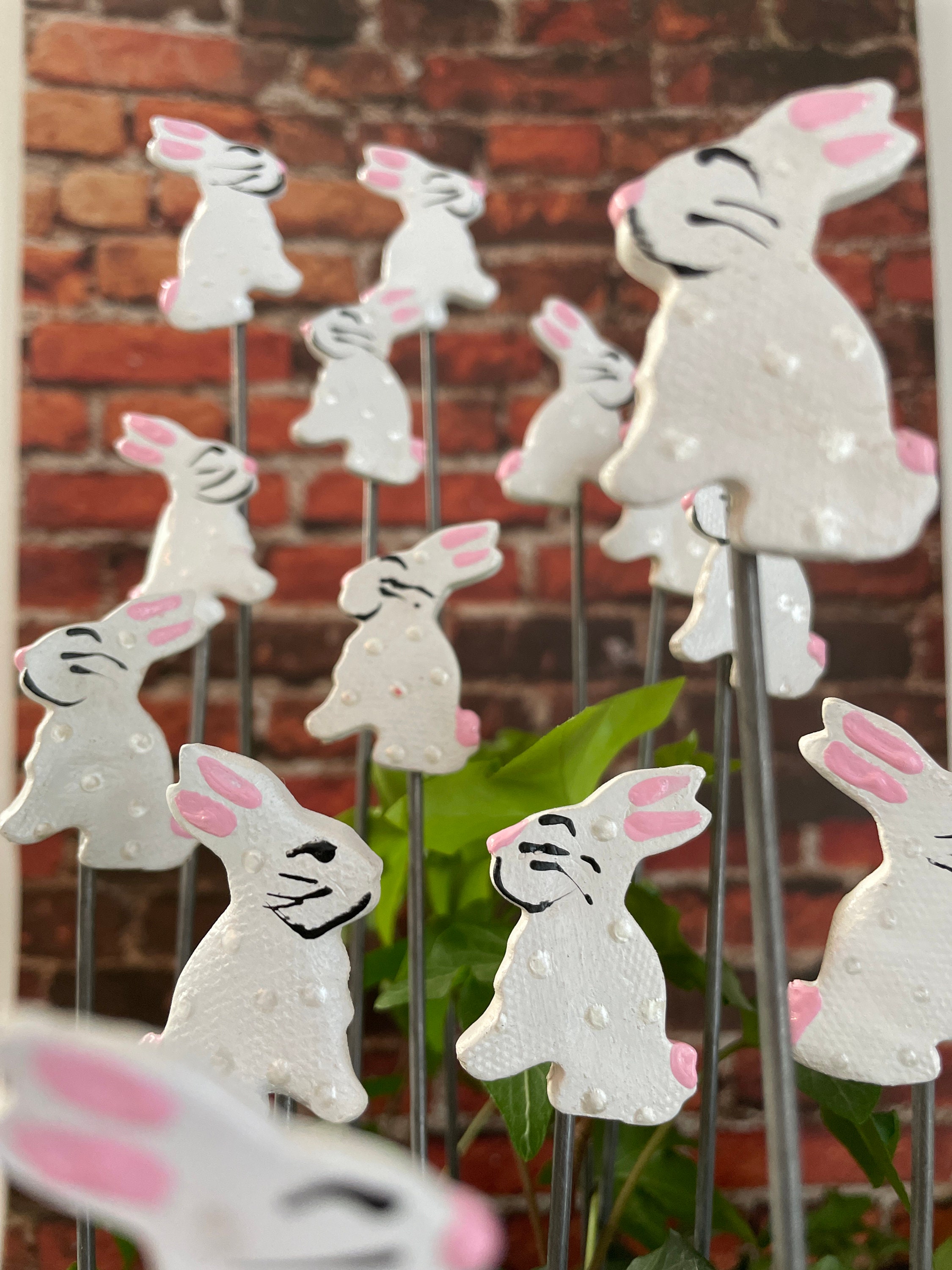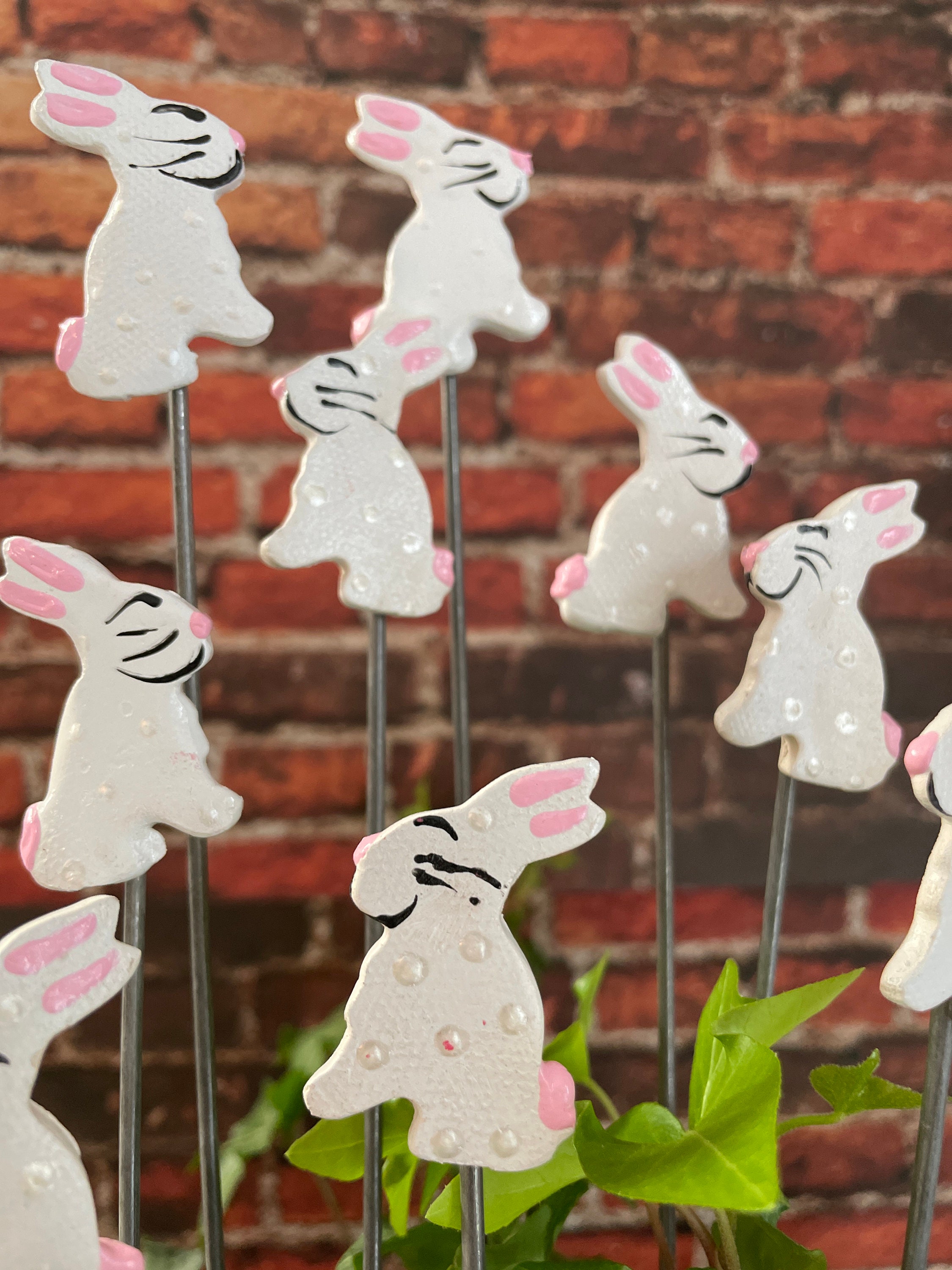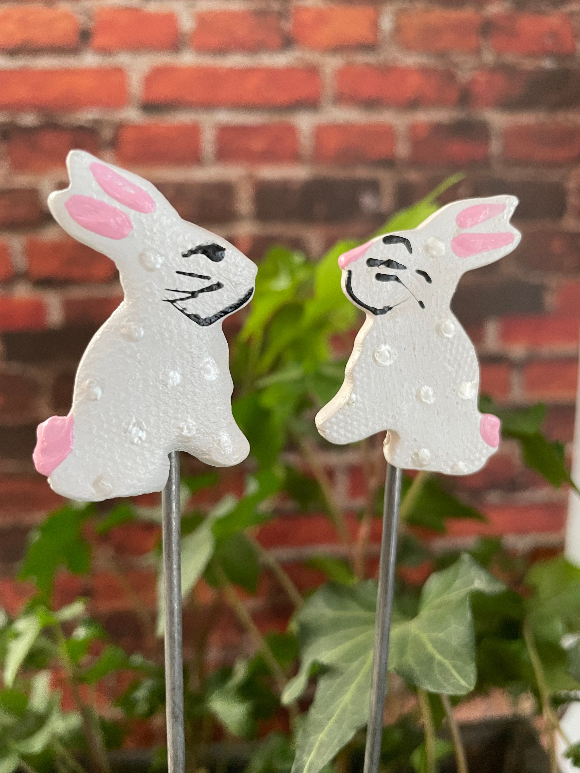 Set of Two Mini 1.5 inch Bunny Rabbit Garden Stakes,Easter Gift,Plant Art For Potted plants, Garden Sculpture,Garden Decor Flower Pot stake
