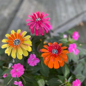 My Whimsical Metal 3-D Zinnia Flower stakes are fantastic small garden ideas, they also make great gifts.