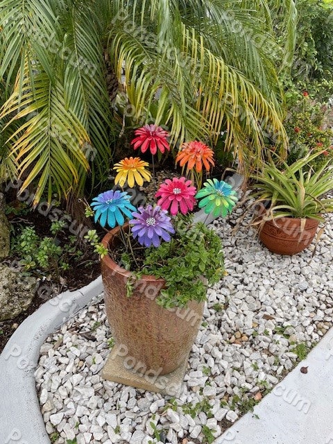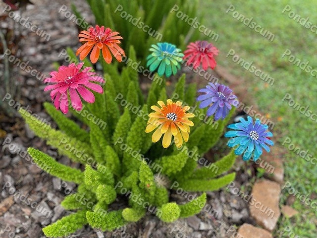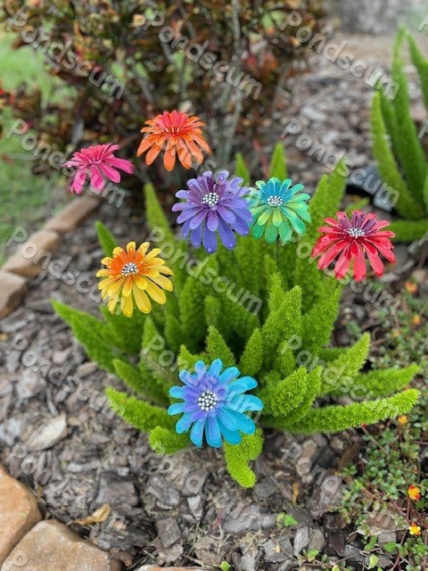 This listing is for a set of Seven Camellia Metal Flower garden stakes.