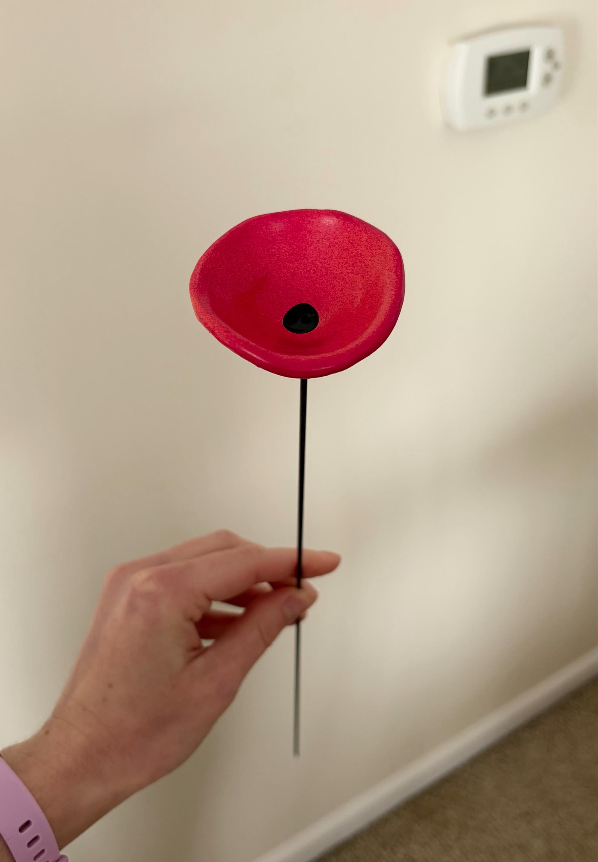 Please note that the flower Cups are made of clay, I recommend bringing the poppies indoors when temperatures are expected to drop below freezing. Keeping them inside until the weather warms up will help avoid potential freezing damage and the stakes may eventually rust due to its metal material.