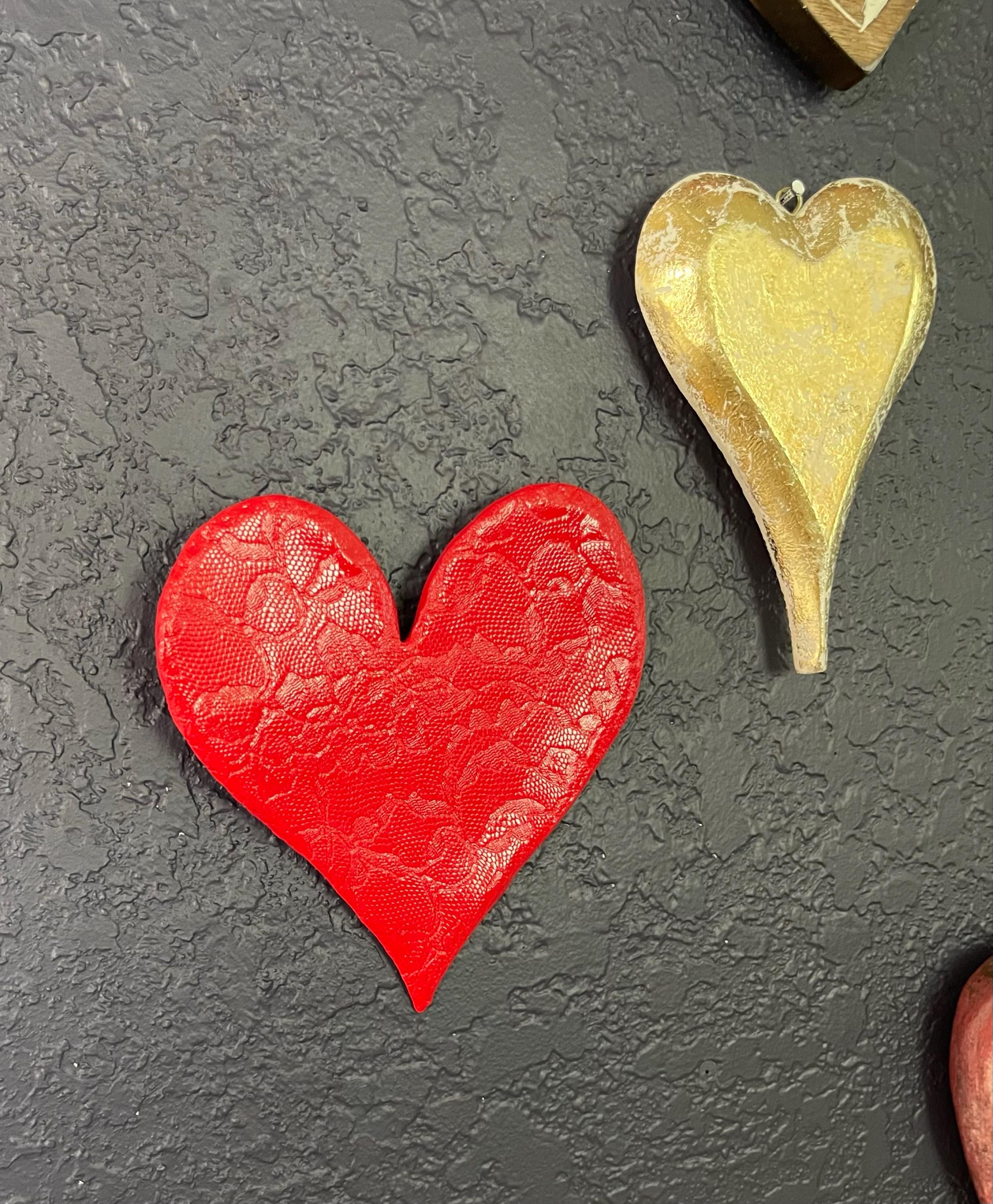 Each piece comes with a metal wire loop glued on the backside for easy hanging, and its handcrafted nature means that no two pieces are exactly alike. Although there may be slight variations in form, size, and color, these differences only add to the unique charm of your Red Heart Wall Decor.