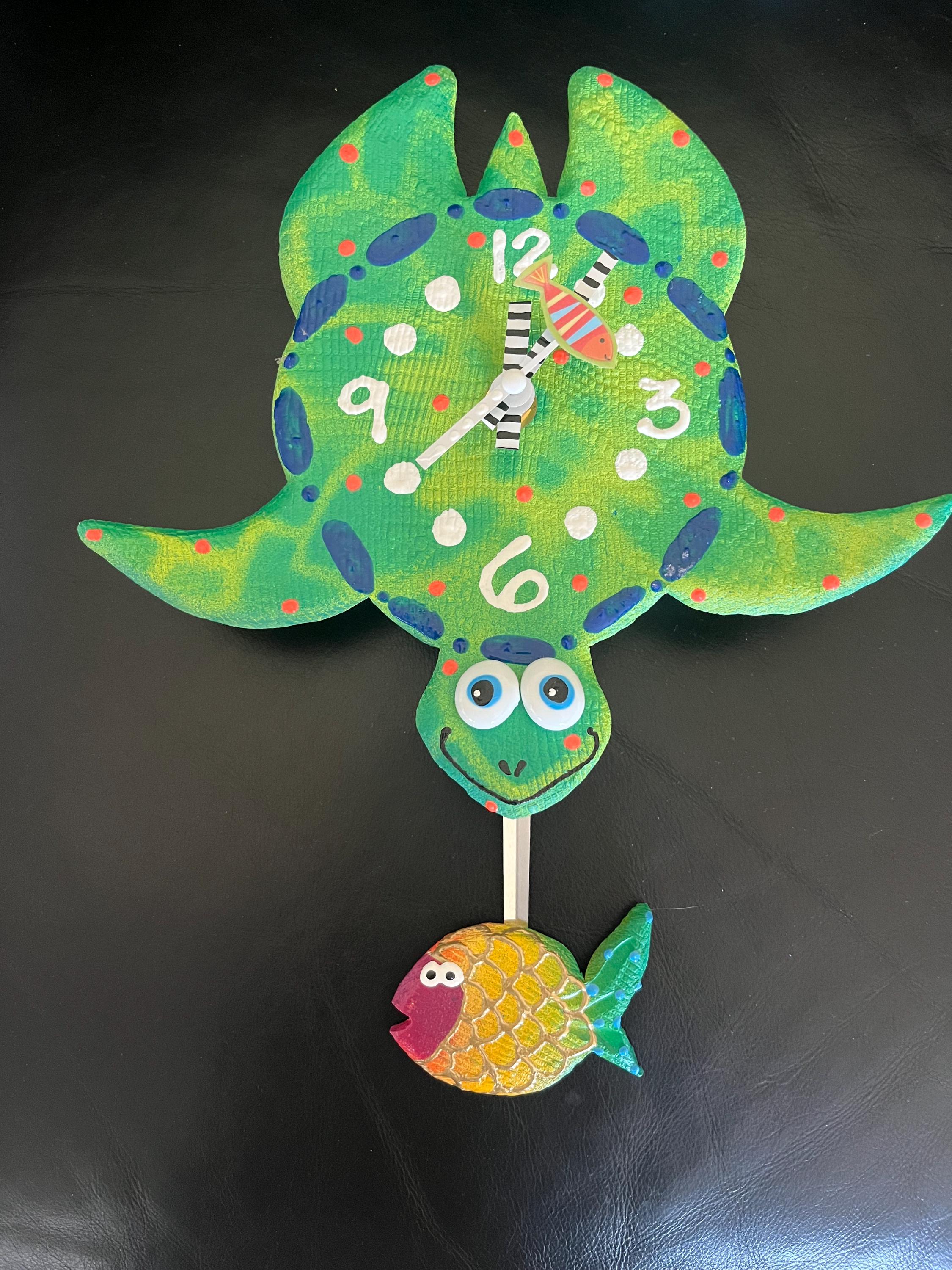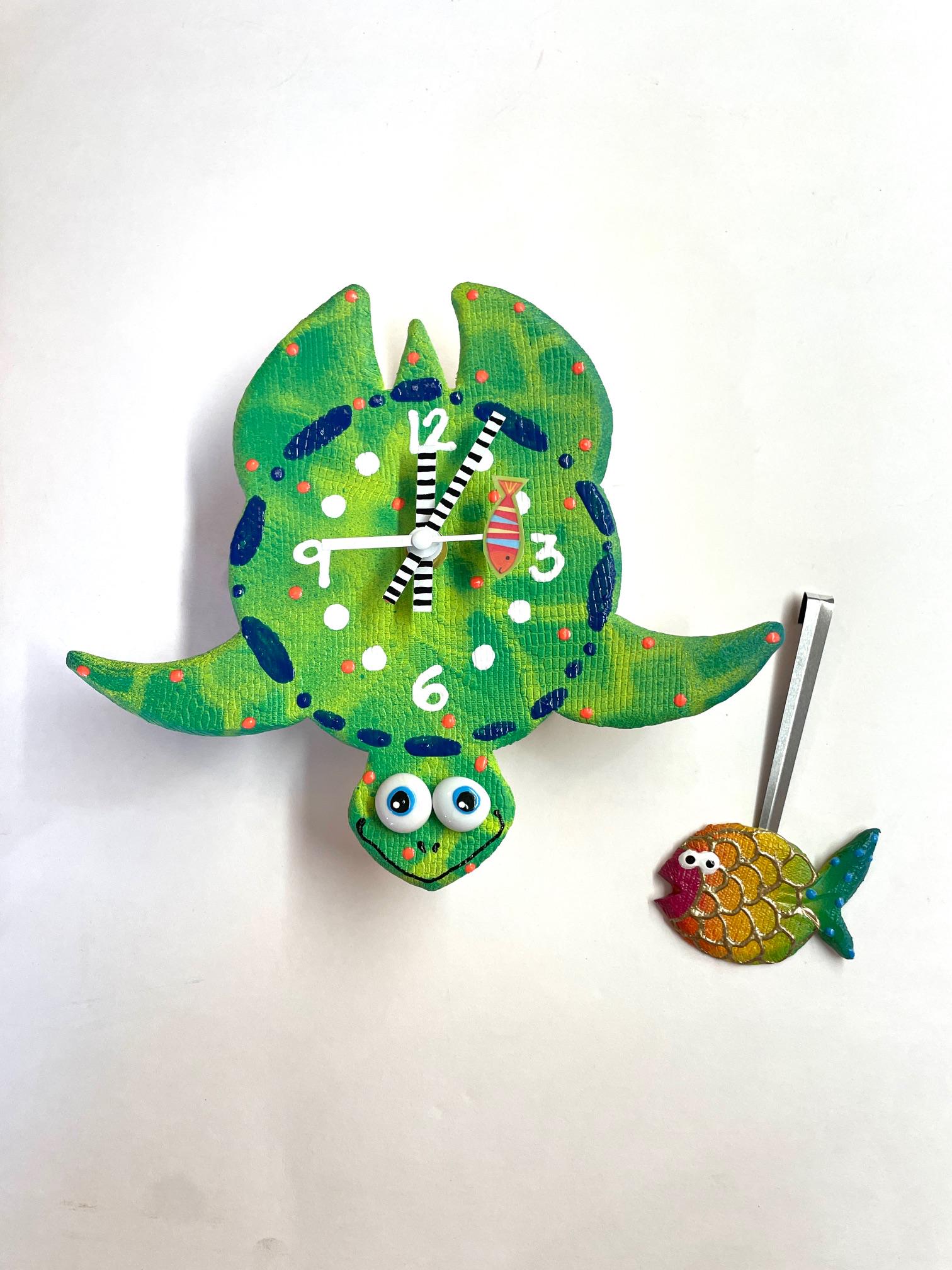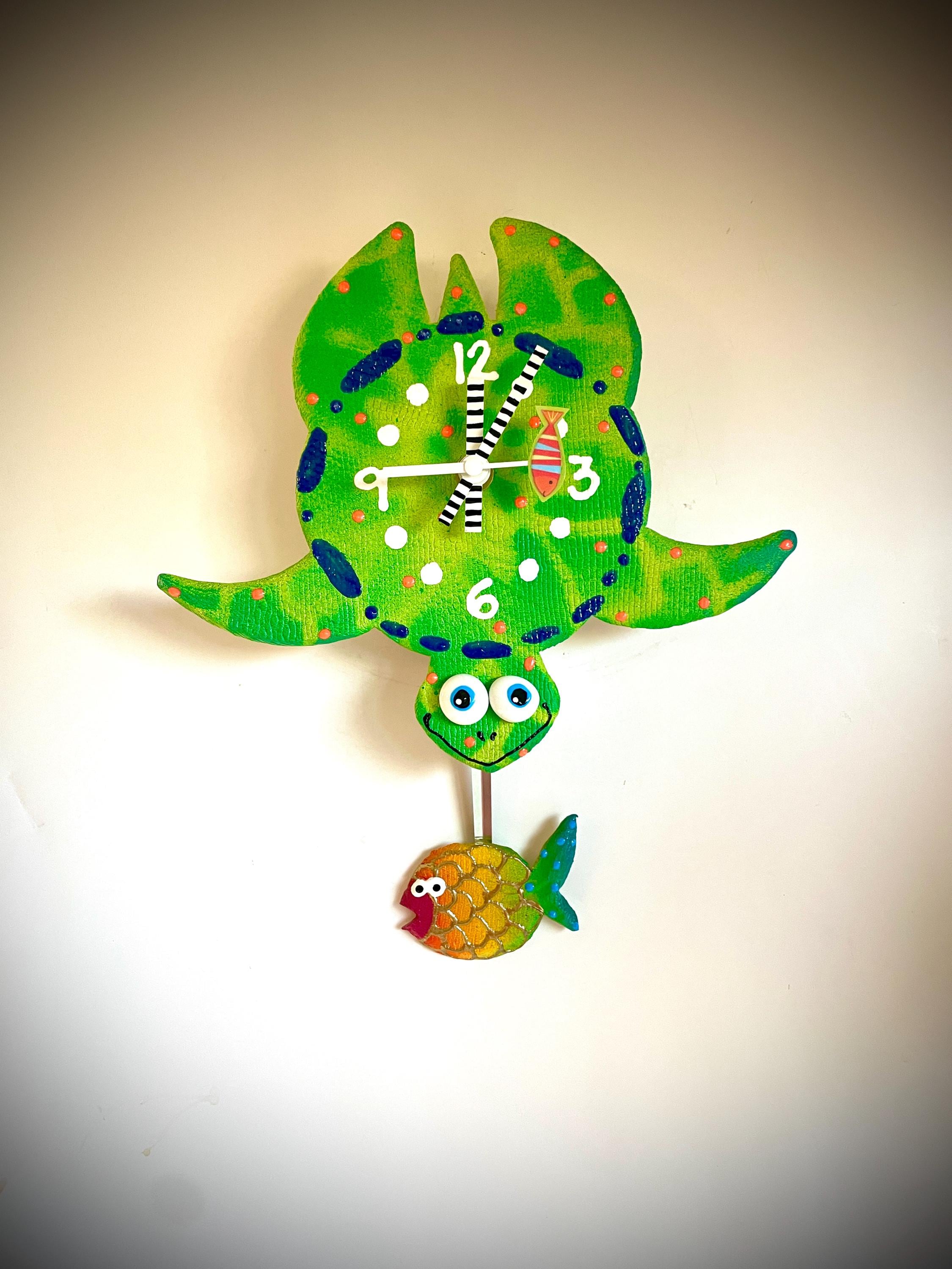 Adorable, whimsical Sea Turtle pendulum wall clock..