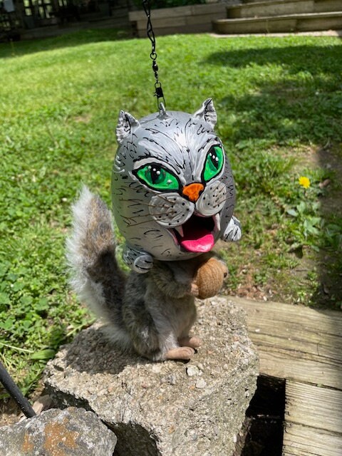 Funny Squirrel Feeder, Cat Squirrel Feeder,Garden Decor,Bird Feeder,Chipmunks wildlife handmade gift idea.Gift For her
