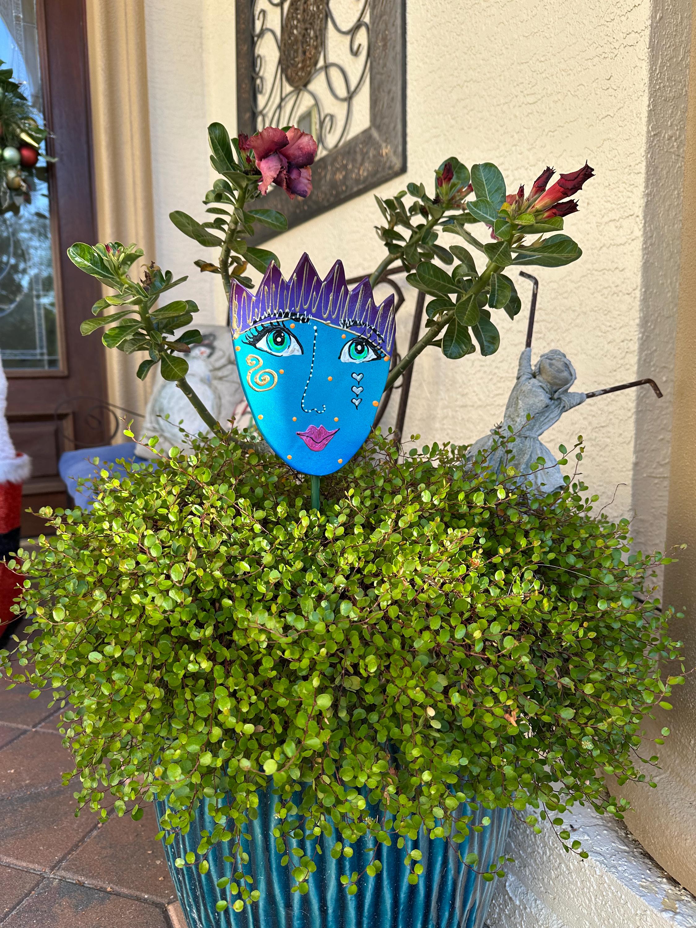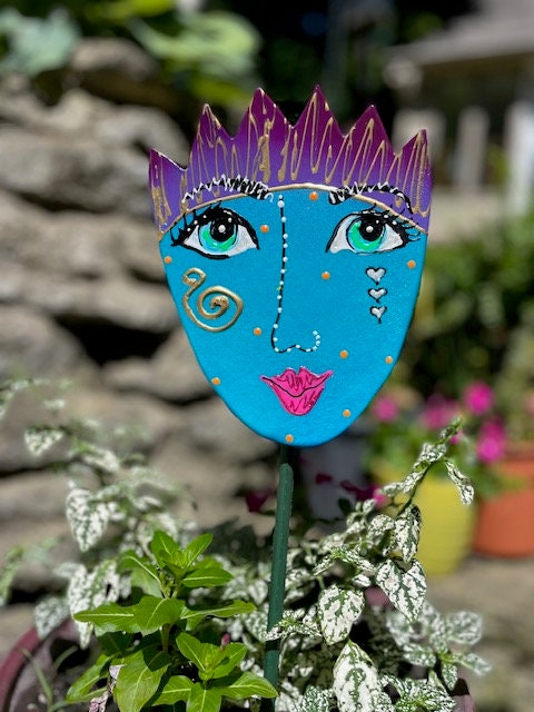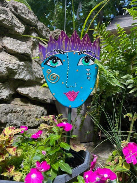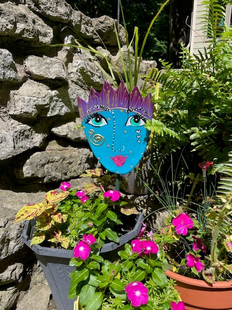 This Bright fun Unique Face Yard Stake is a Lovely addition to your backyard, courtyard or garden!