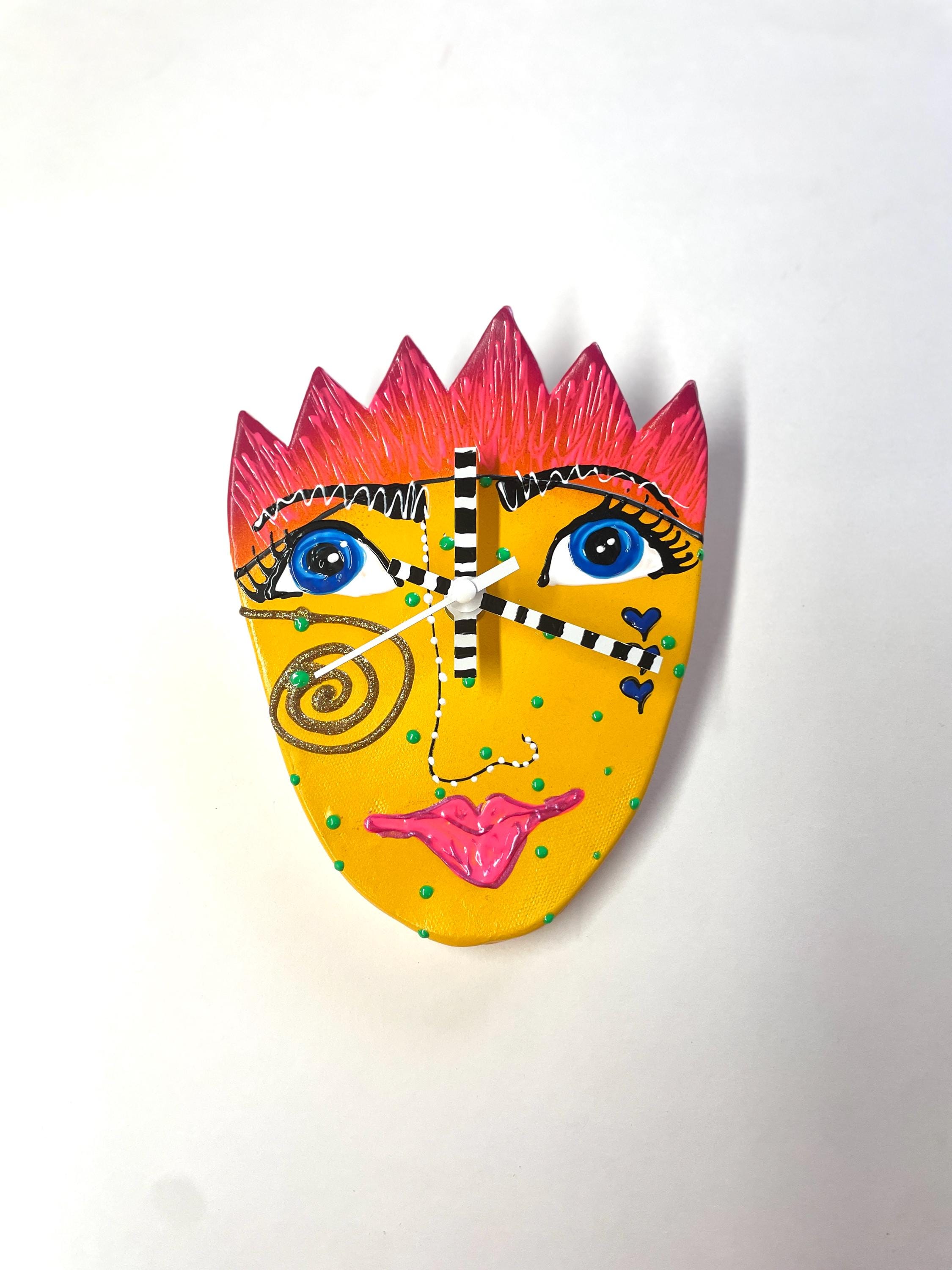 Bring a touch of whimsy and style to your walls with the Whimsical Ceramic Wall Face Clock - a must-have for any art lover or clock enthusiast. Measuring approximately 7.5 inches tall and 6 inches wide, this clock is a compact yet eye-catching addition to your decor. Its unique design is sure to stand out and capture attention, making it a great conversation starter.