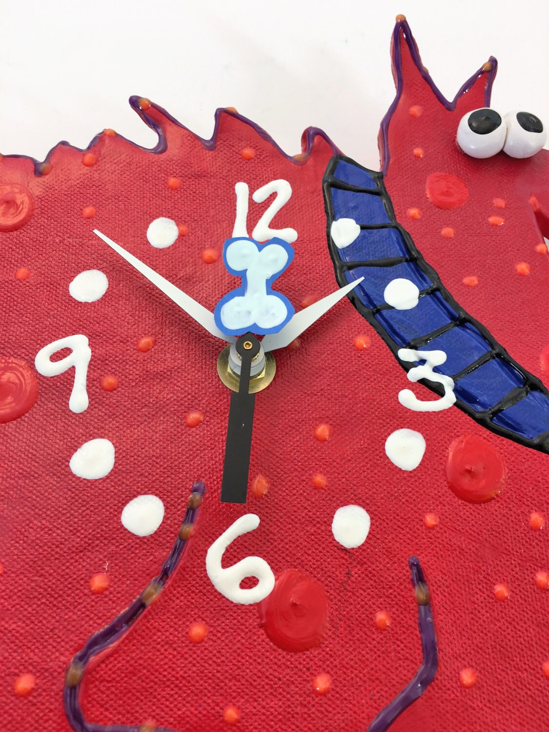 Look closely...this very happy dog clock has a bone for the second-hand.