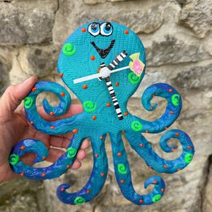 This is the CUTEST, ONE OF A KIND, MOST WHIMSICAL LITTLE FISH CLOCK EVER!!! I got it for our cabin in the woods for a bedroom with an ocean creature theme. Boy did this little darling fit right in. You cannot help but SMILE or LOL when you see it! Absolutely adorable! The fact that it is also a working clock is just icing on the yummy cake!!! Stephanie of PondScum Ceramics - keep up the awesome work! You are on my FAVE list!!! Jo B, Cusick WA