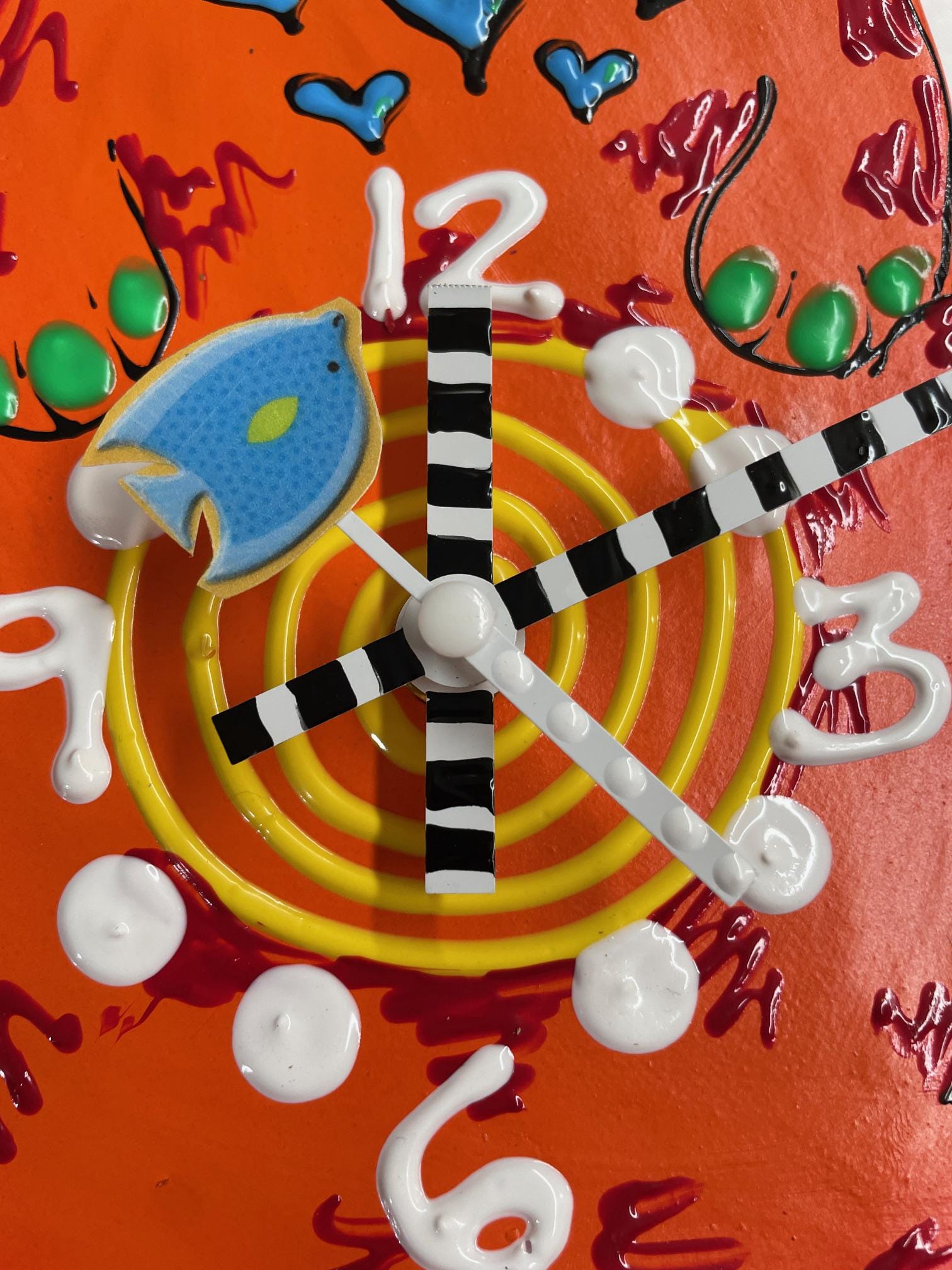 This adorable clock is my original design and completely hand painted by myself (as are all of my pieces). This unique piece is certain to add a touch of whimsy to any wall in your home. It also makes a great gift to that special someone.
