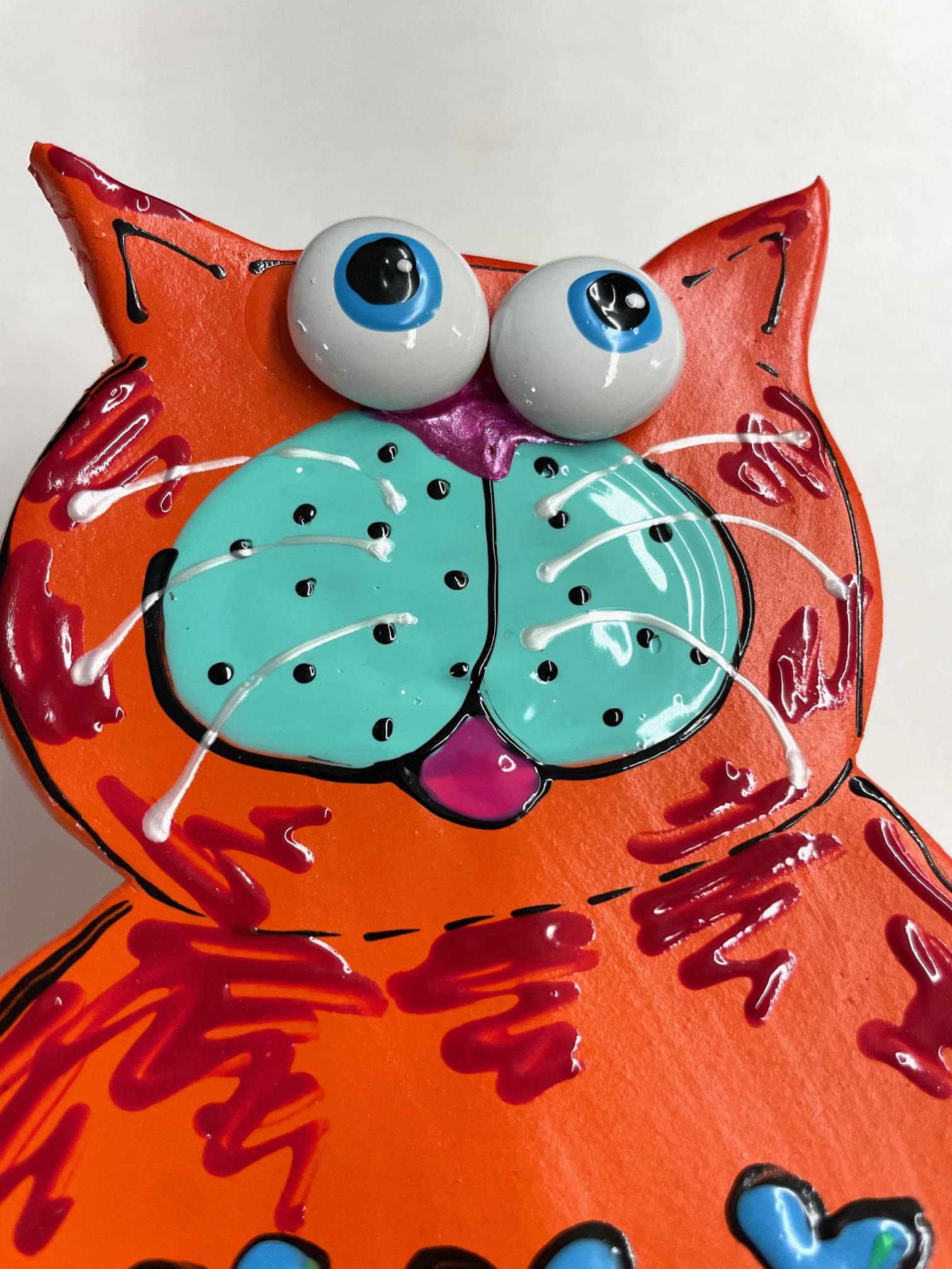 This Happy cat with a grin, and a curious tail swinging back and forth, will add a touch of whimsy to your wall and make you smile whether you're in the mood or not.