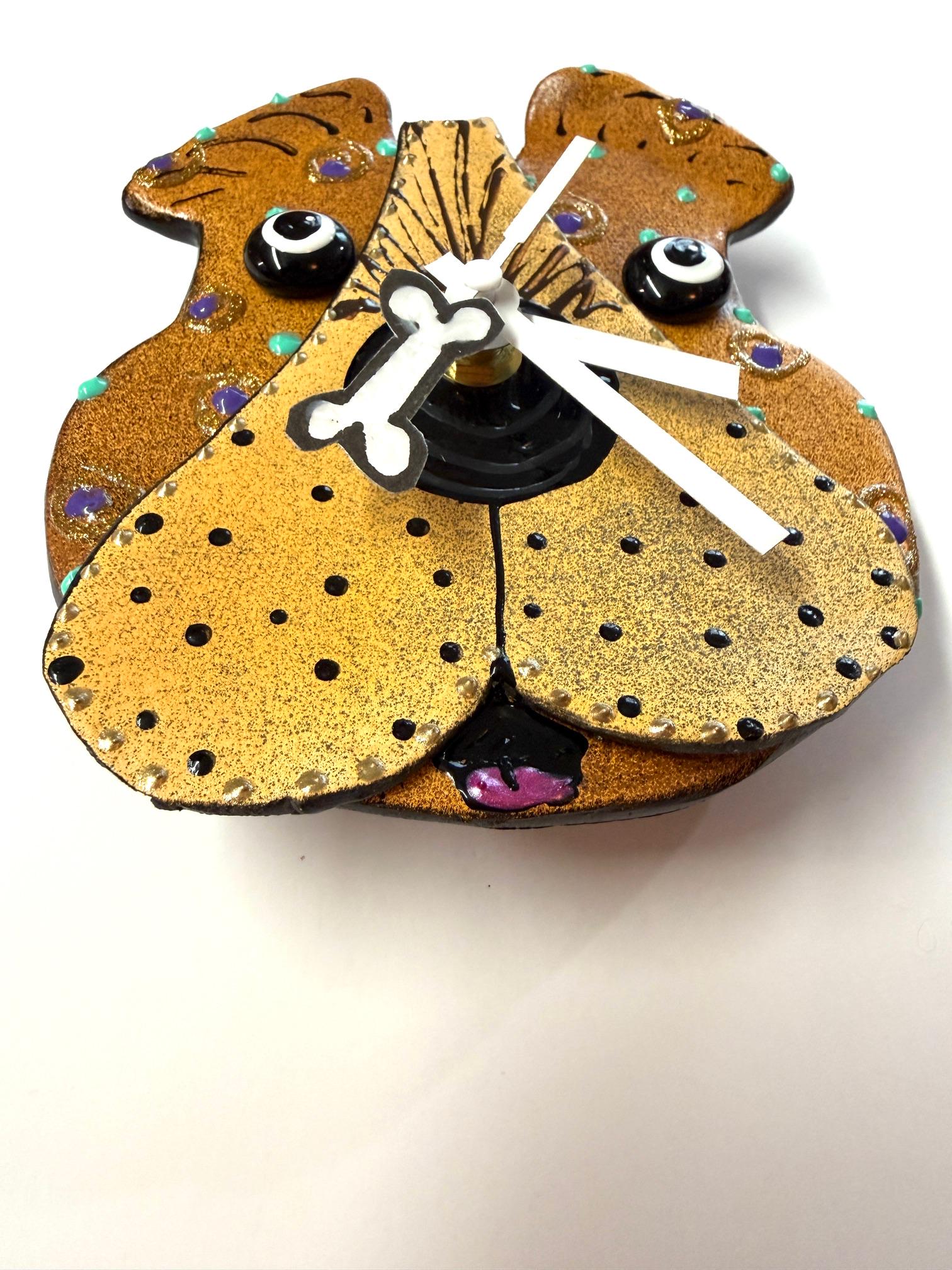 This original design makes a fantastic gift for any dog lover or a fun addition to your own decor. Each clock is equipped with a top-quality quartz movement, tested for accuracy, and a large hanger on the back ensures easy installation. Embrace the charm of handmade art with this adorable clock, crafted by an artist who takes pride in creating pieces that bring joy and character to your home.