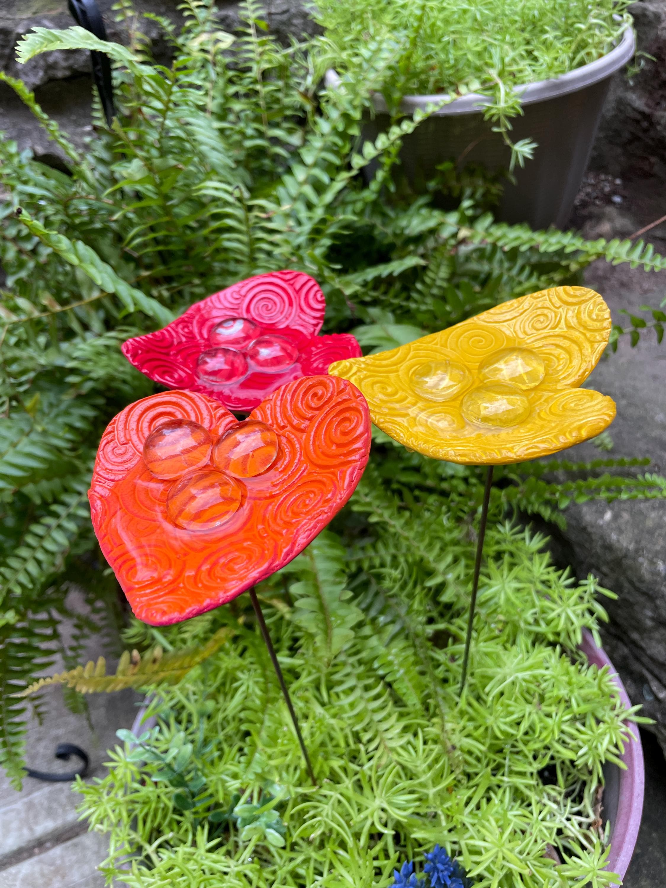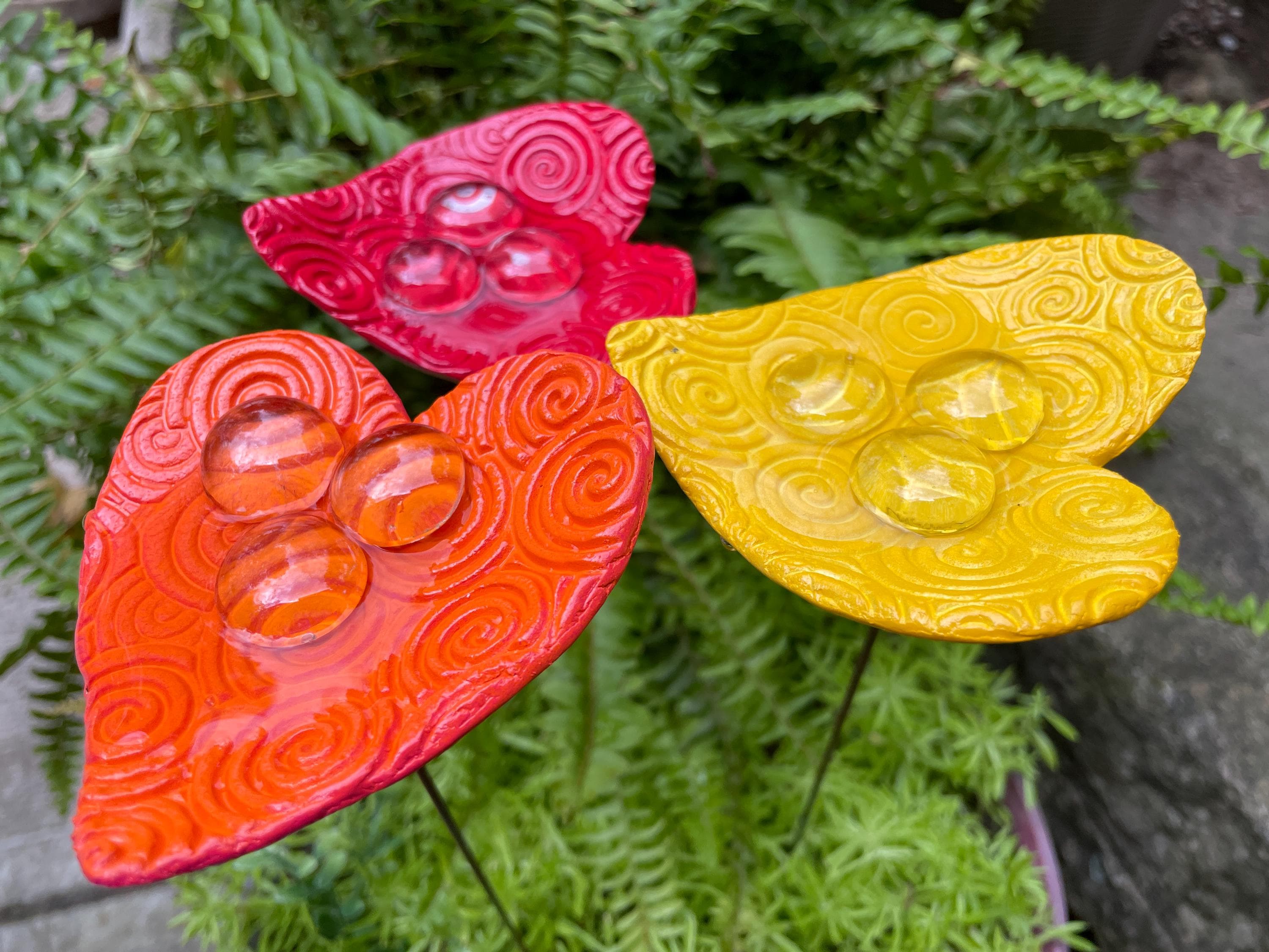 Each piece is handmade and one-of-a-kind, with slight variations in color and detail. A thoughtful gift for gardeners, pollinator lovers, or anyone who enjoys unique outdoor decor.