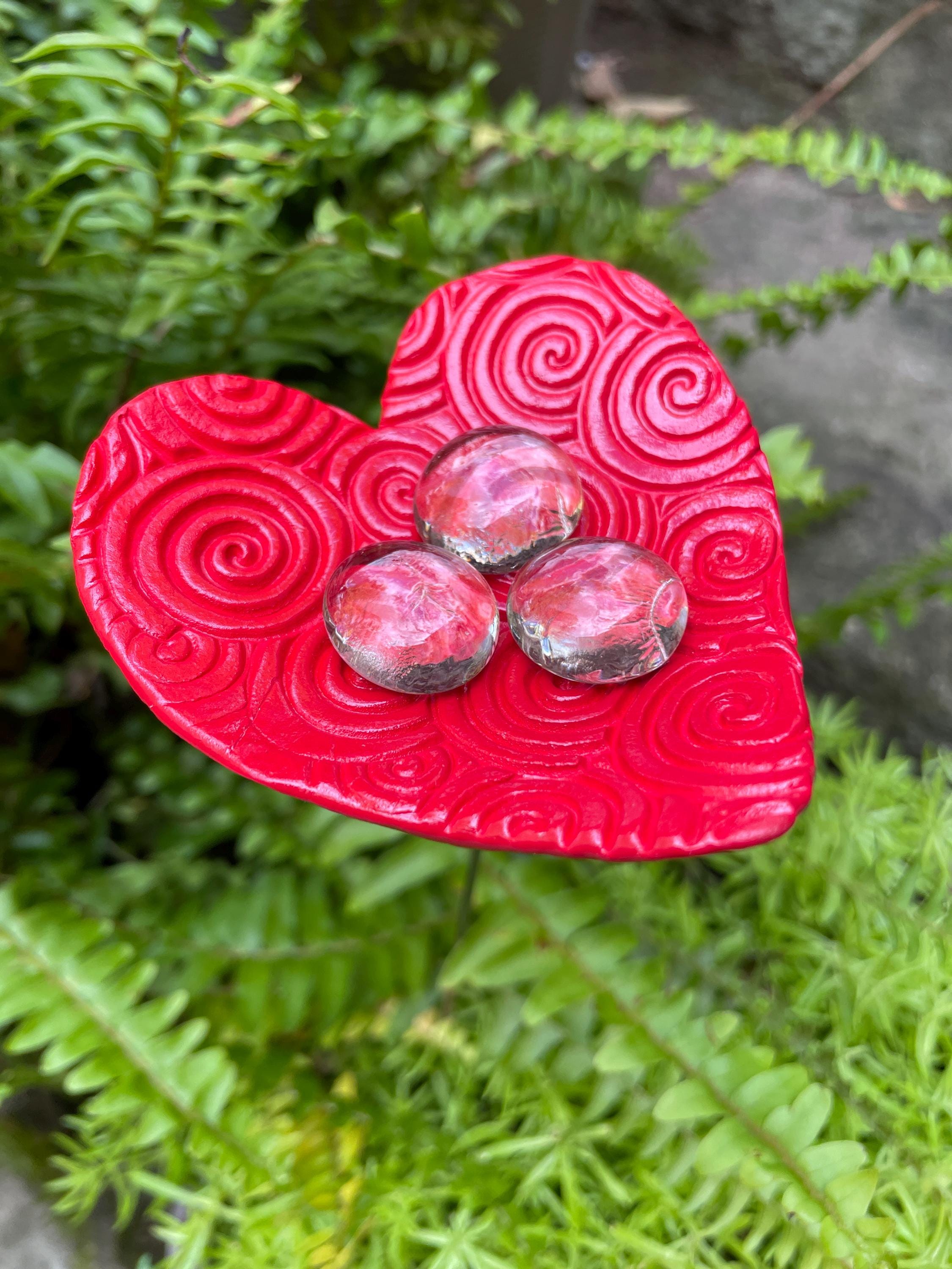 1 x Red Heartπ Bee Bath / Butterfly Puddler β Create a safe oasis for pollinators! Fill the ceramic Heart cup with water, add the included glass beads, and give bees and butterflies a place to land and sip safely. A charming way to support pollinators while adding a pop of color to your garden.