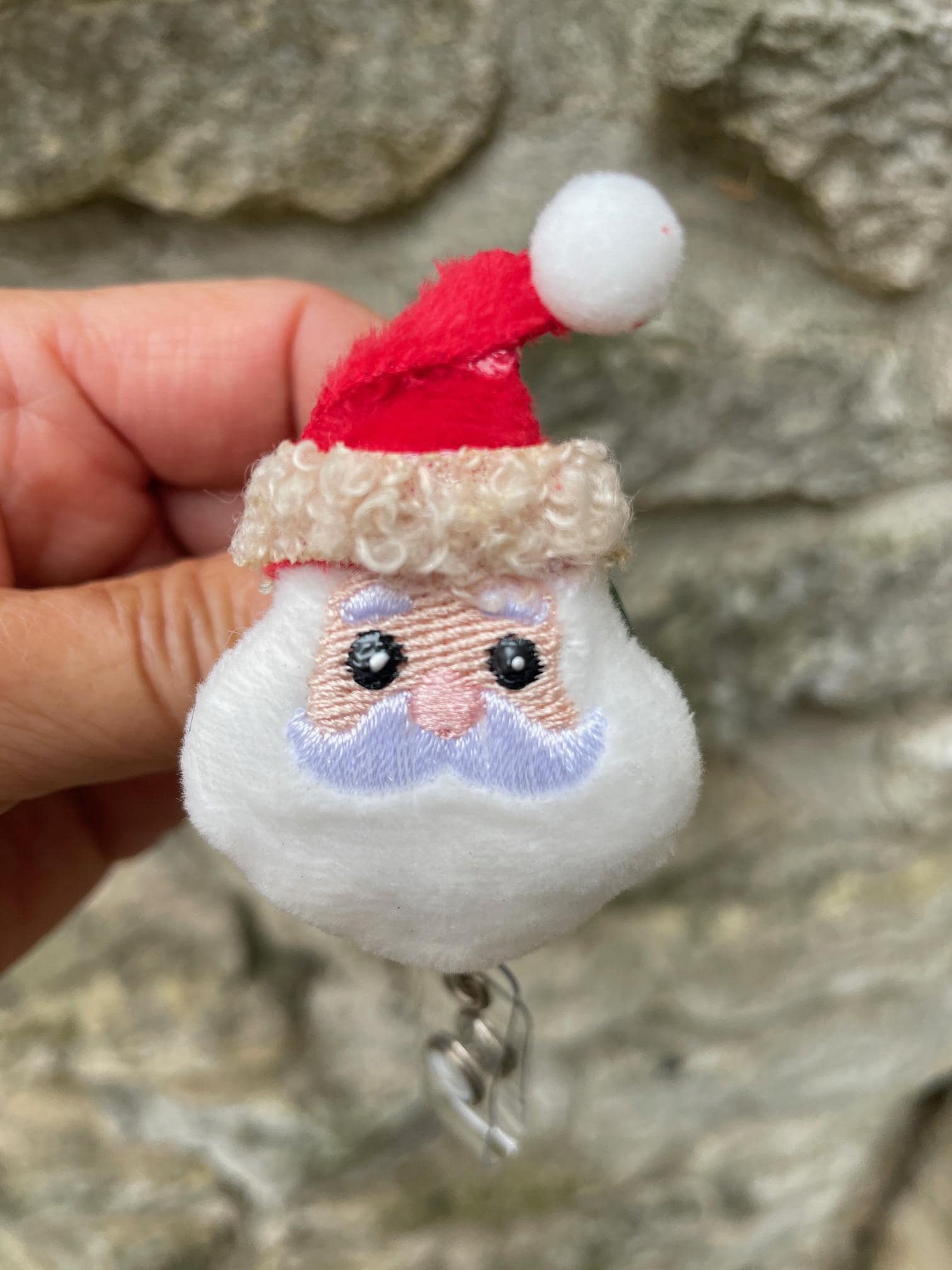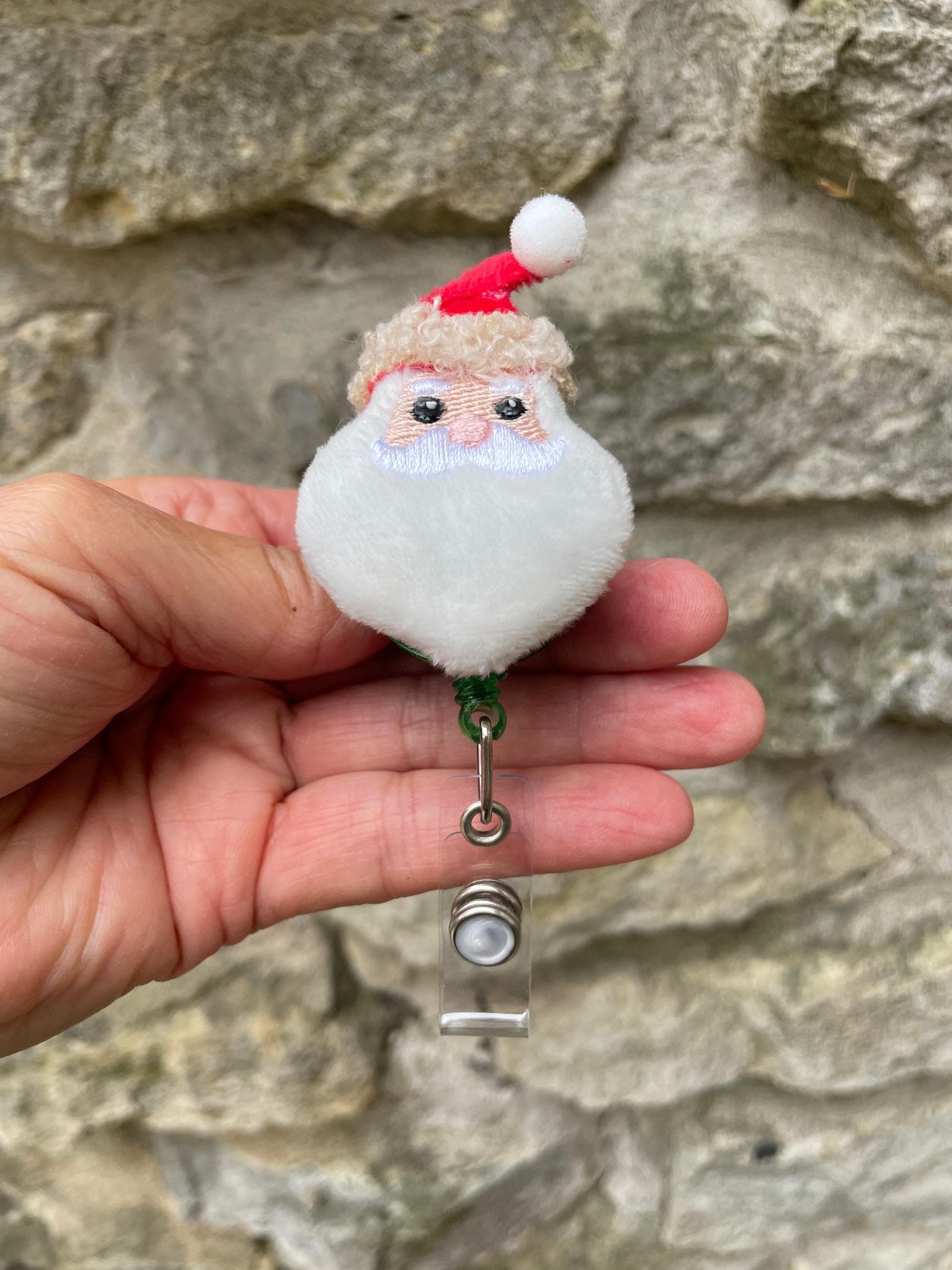 This festive badge reel features a soft felt Santa design that’s carefully hand-stitched for lasting quality. The embroidered details give it a cheerful, polished look, while the retractable holder with a slip-on clip keeps your ID, name tag, or keys secure and within easy reach.