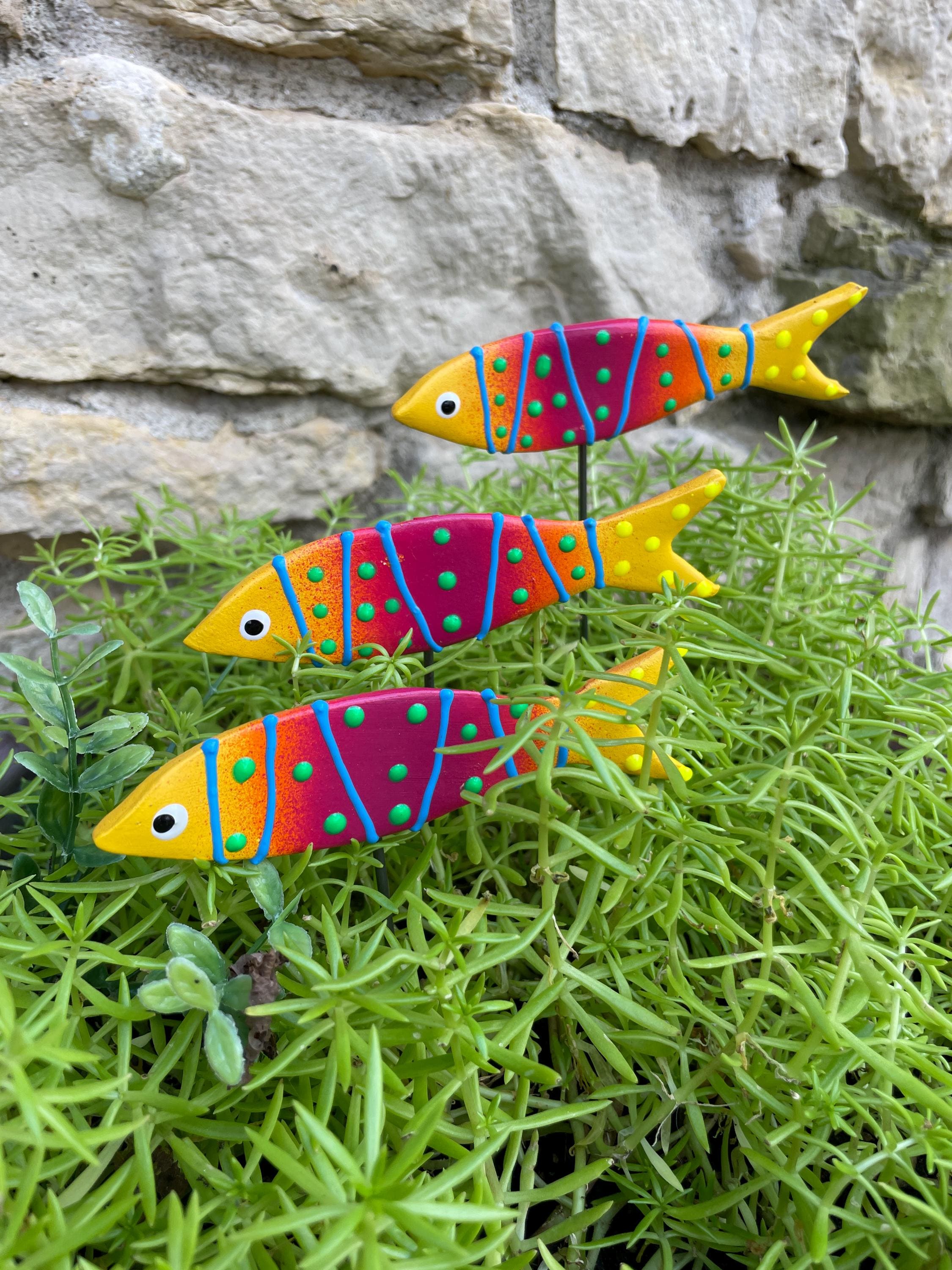 With their bright colors and fun design, these fish planter picks are sure to bring a smile to anyone's face. By supporting a small business and an artist who takes pride in creating high-quality pieces, you can enjoy a unique addition to your indoor or outdoor garden decor that will stand the test of time.