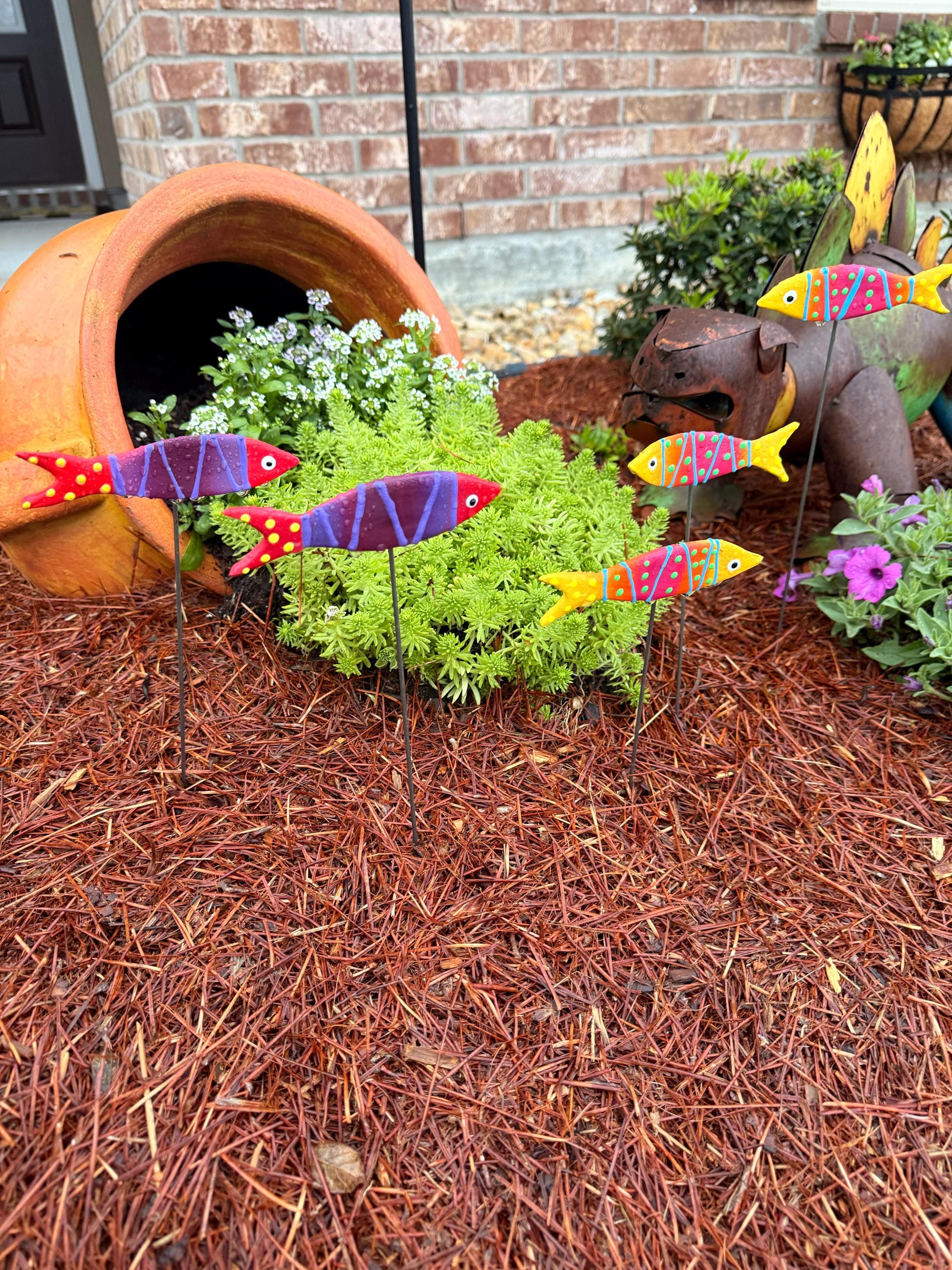These little fish are not just a cute decorative accent, they also make a great gift for the green thumb in your life. They are perfect for adding a unique touch to your flower pots, or for use as an accent piece in your garden or patio.