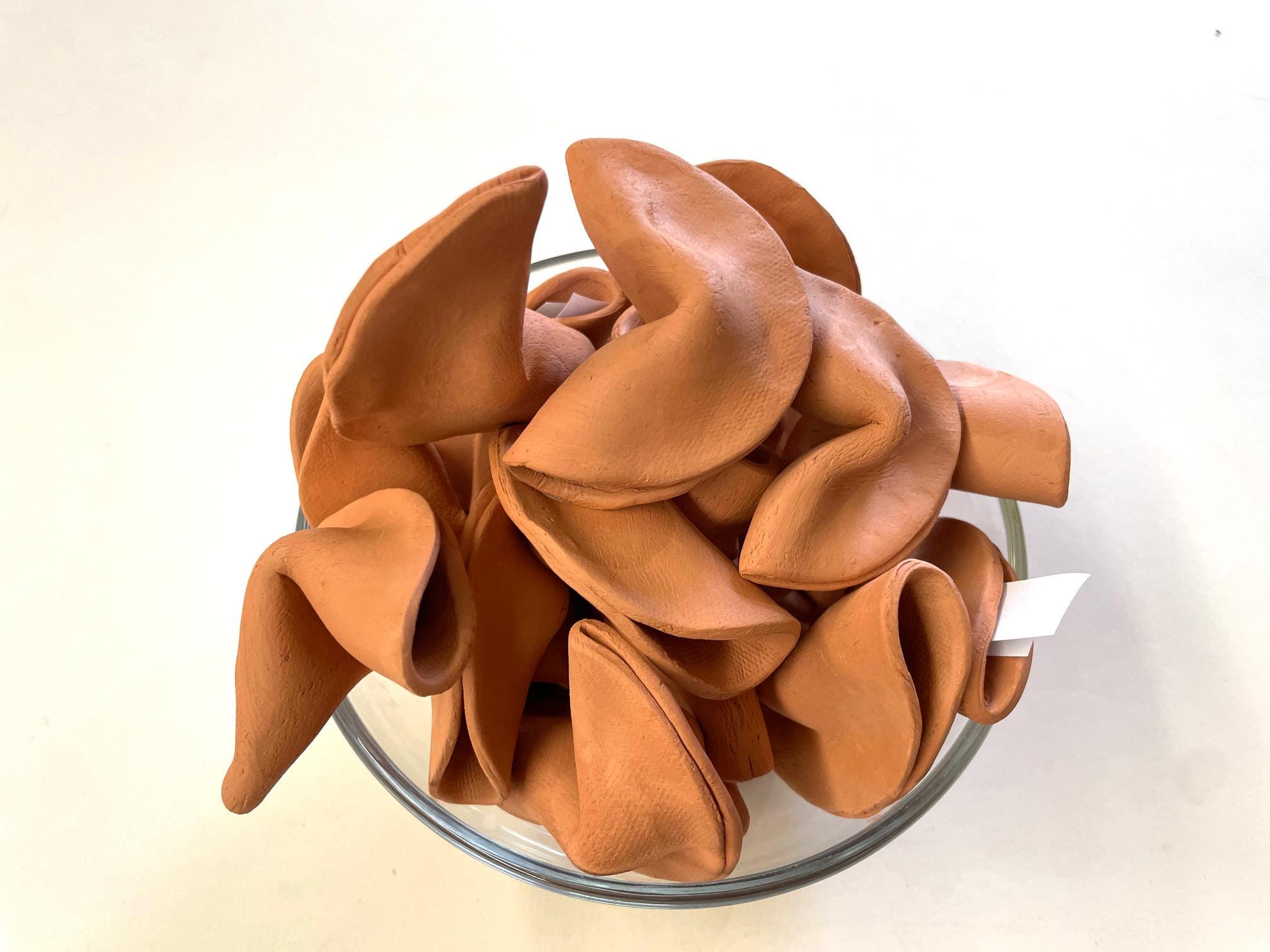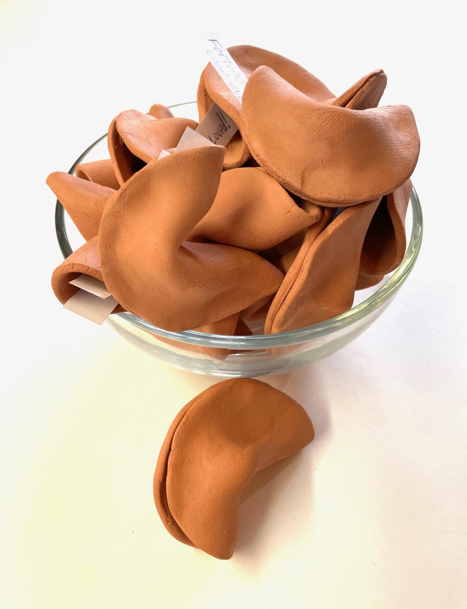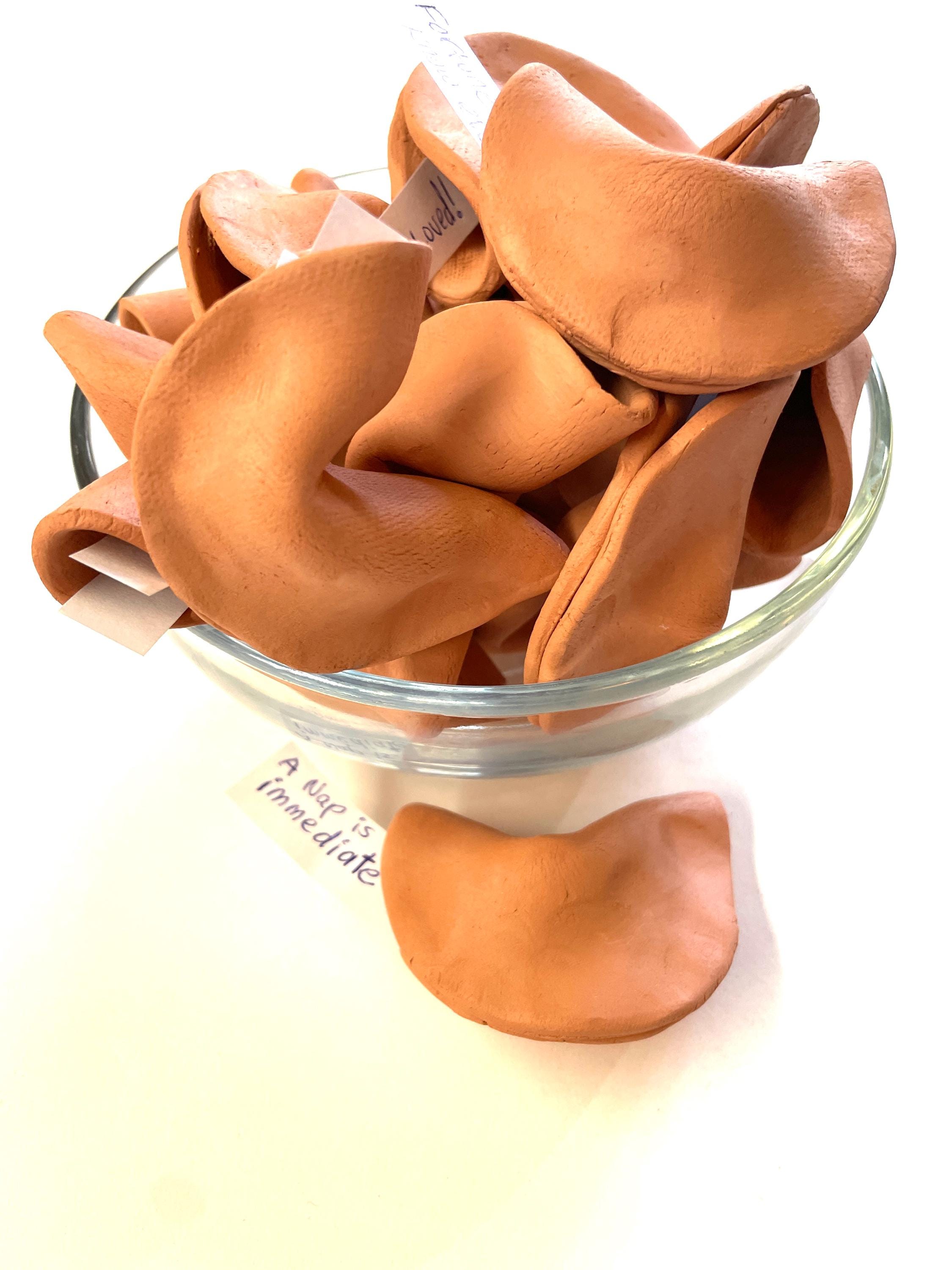 Share a special message in a fun and meaningful way! Each handmade ceramic fortune cookie includes a blank note so you can write your own personalized fortune. Every piece is unique and one of a kind.