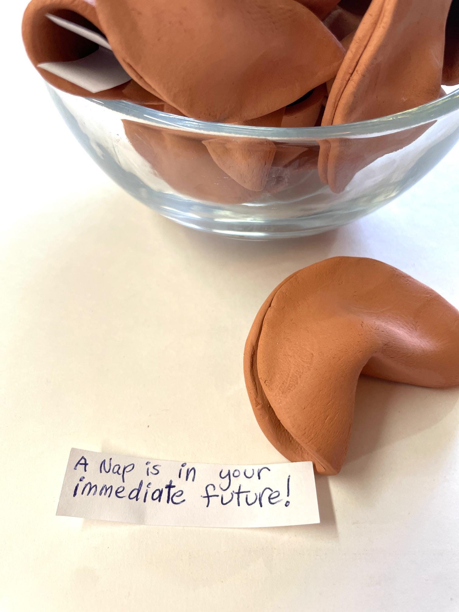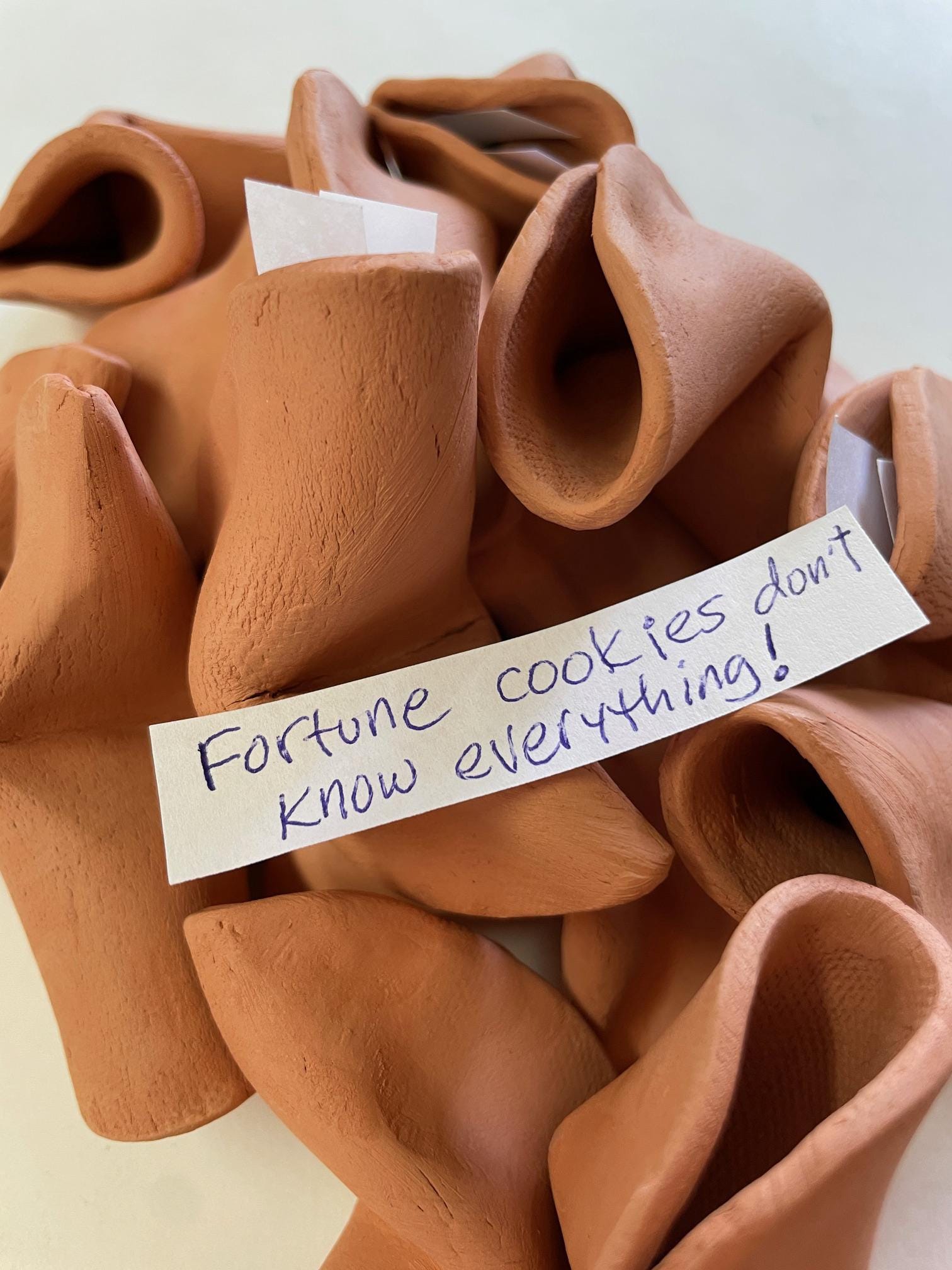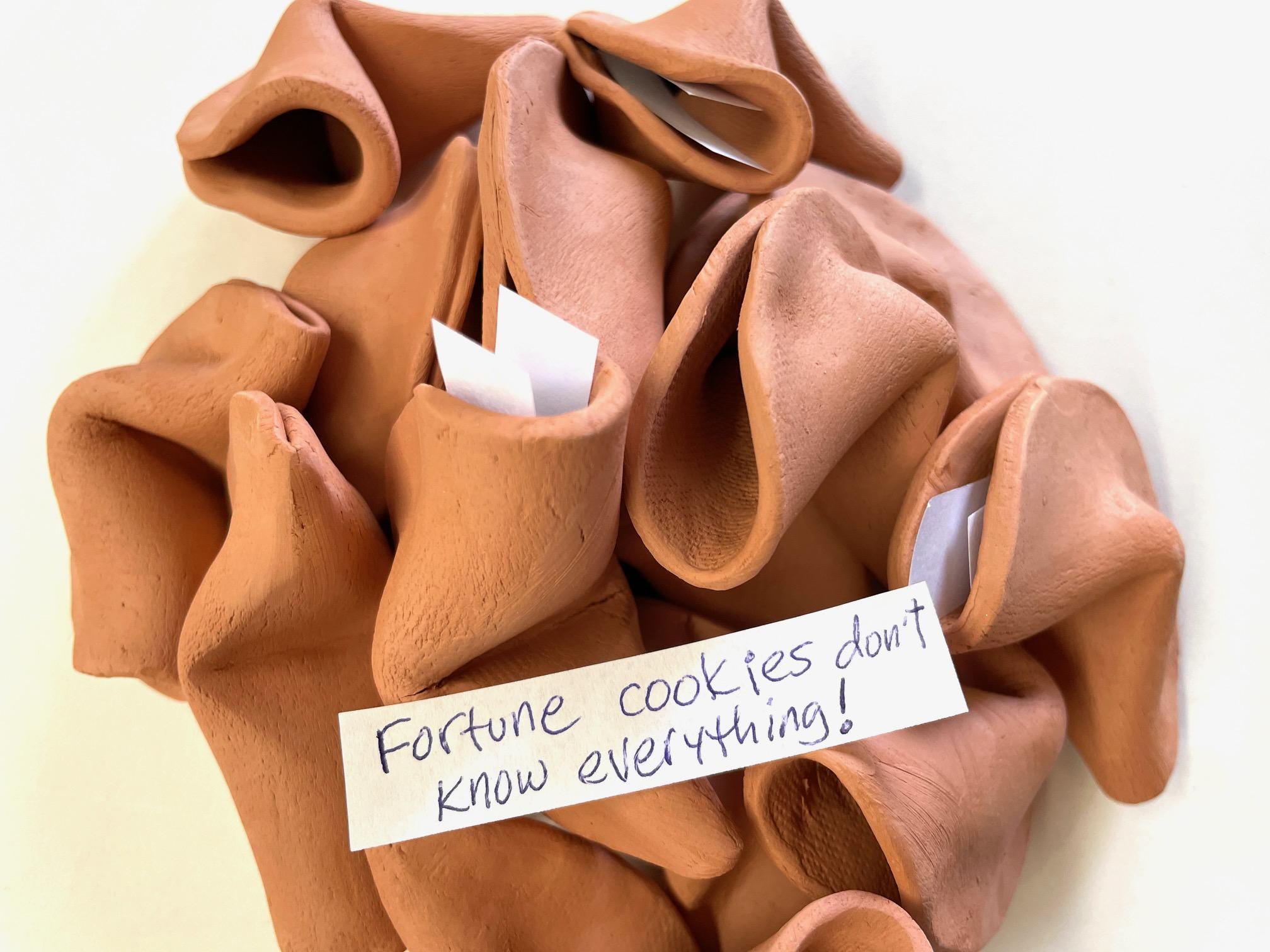 Share a special message in a fun and meaningful way! Each handmade ceramic fortune cookie includes a blank note so you can write your own personalized fortune. Every piece is unique and one of a kind.