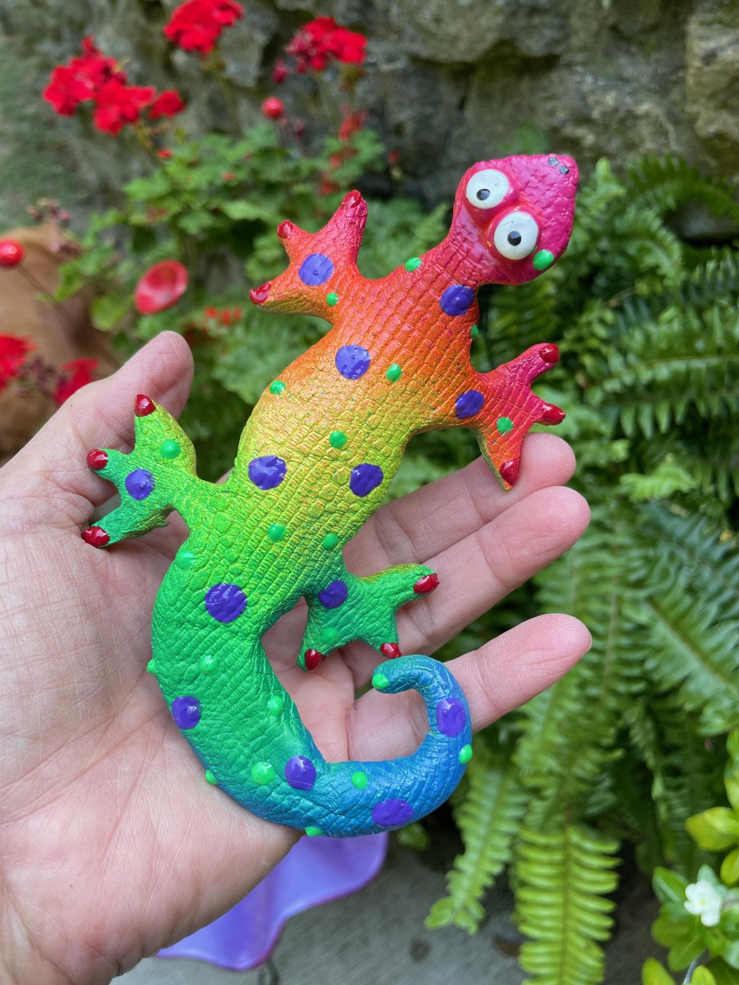 The Lizard is weather-resistant and require no watering, making it an ideal choice for any garden or outdoor space. These Lizards are also airbrushed with enamel paint and finished with a clear coat spray with UV-inhibiting properties to protect against the sun's fading effects.