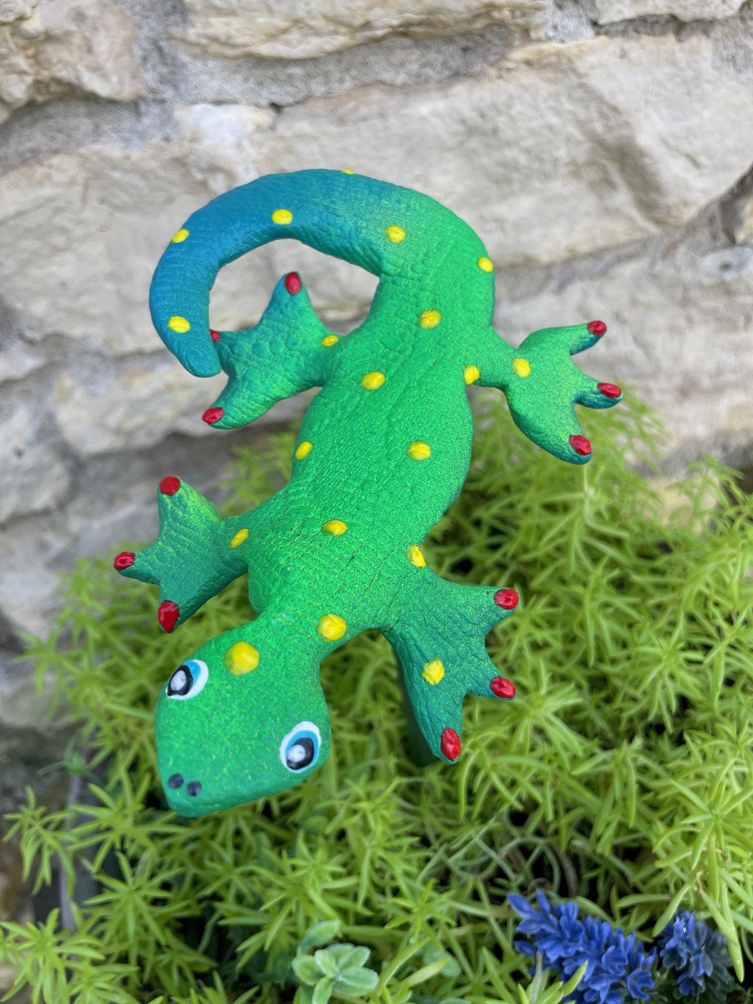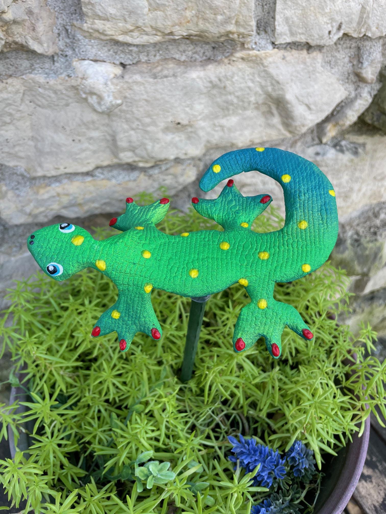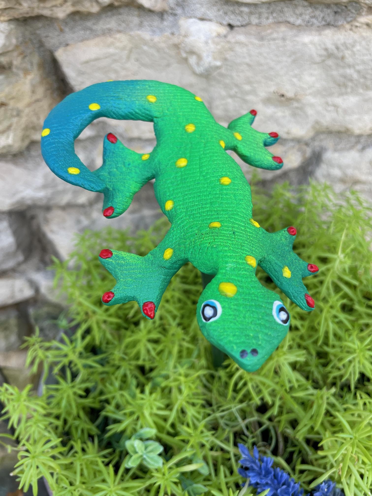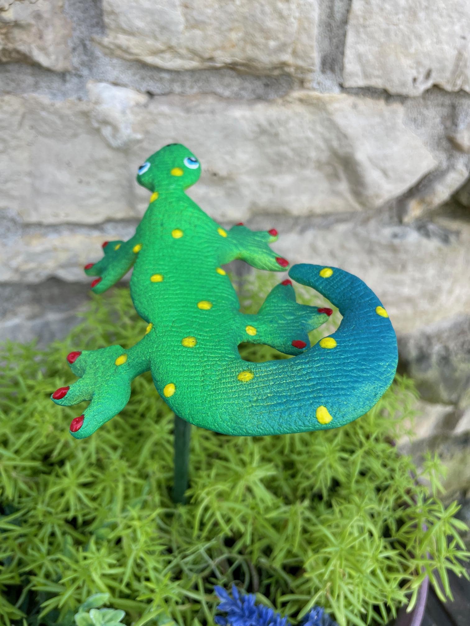 The Lizard is weather-resistant and require no watering, making it an ideal choice for any garden or outdoor space. These Lizards are also airbrushed with enamel paint and finished with a clear coat spray with UV-inhibiting properties to protect against the sun's fading effects.
