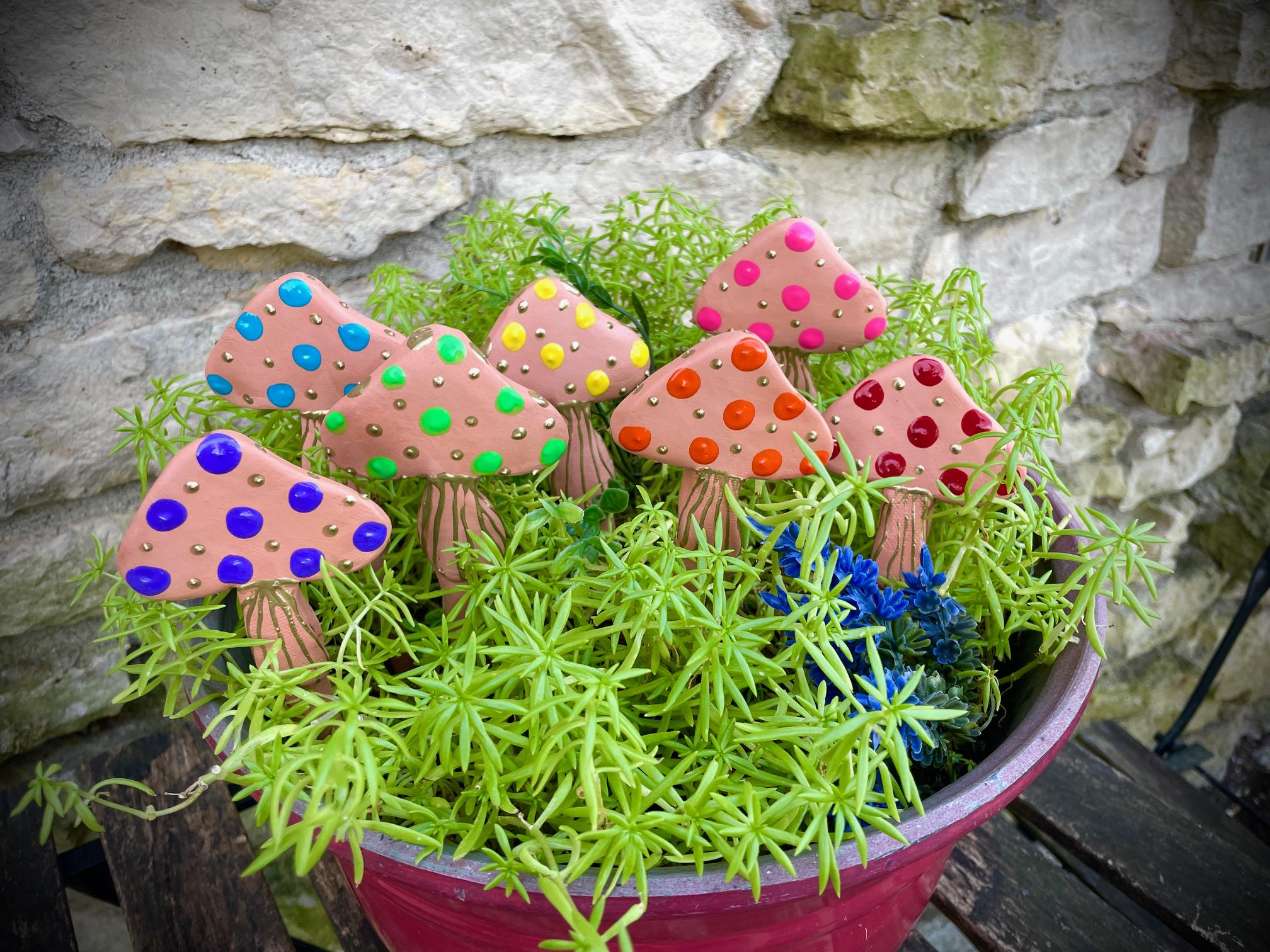 Give these adorable little shrooms a purpose in your home or garden! These charming clay mushrooms aren't just cute—they're hard workers too. Nestle one into the soil of your potted plant, and it will help you keep an eye on your plant’s hydration. When wet, the mushroom changes temperature and color. If its post feels cool and looks darker than the rest of its body, your plant is well-watered.