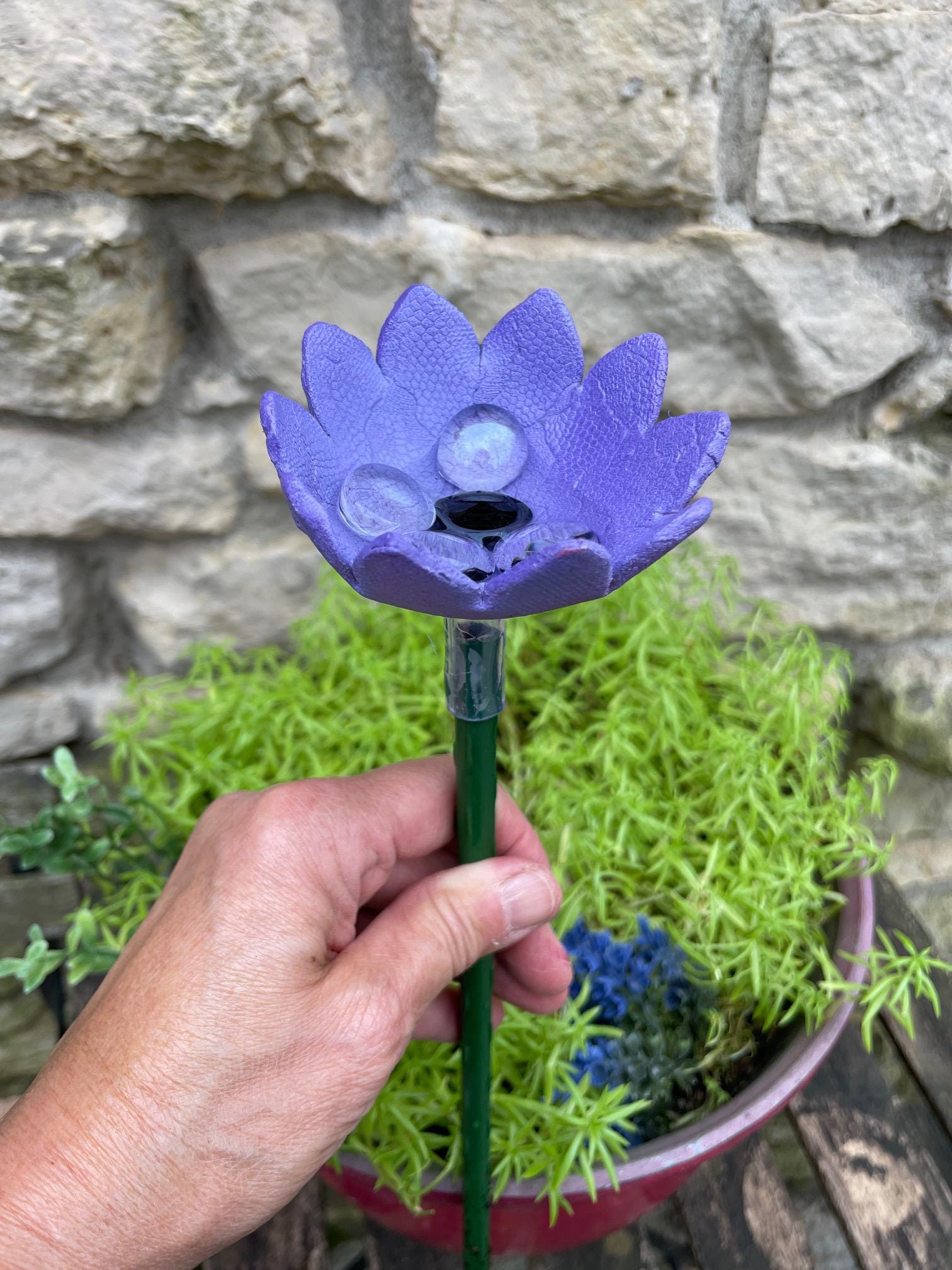 Handcrafted garden Flowers is made out of Stoneware clay.Once the clay is dry, the Whimsy Flowers are fired in my kiln to give them strength and durability.