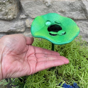 Size measures approx. 3.5” wide x 1” high x 1" deep. Item comes with a 12" metal rod so it’s ready to plant and enjoy!