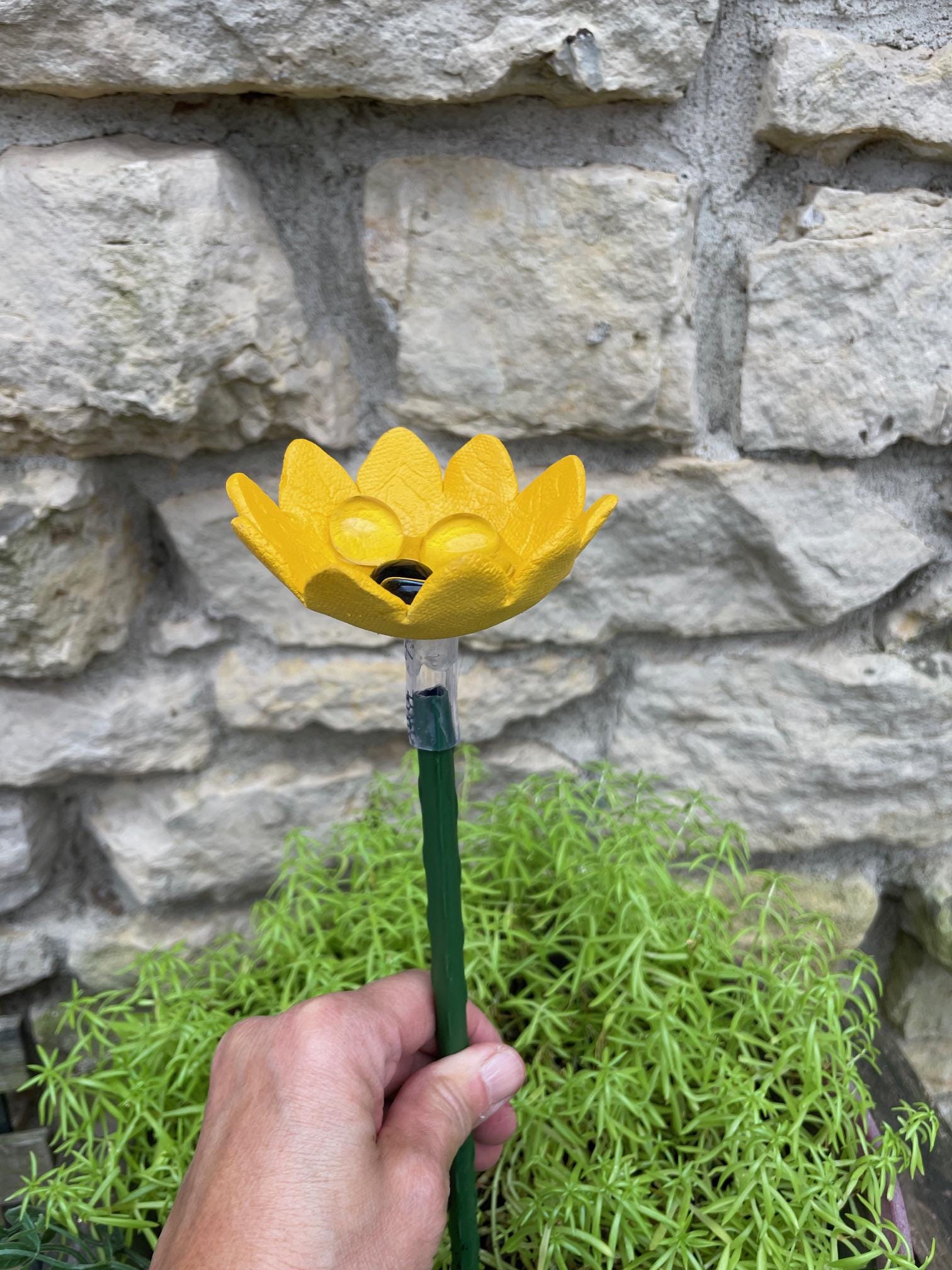 Handcrafted garden Flowers is made out of Stoneware clay.Once the clay is dry, the Whimsy Flowers are fired in my kiln to give them strength and durability.
