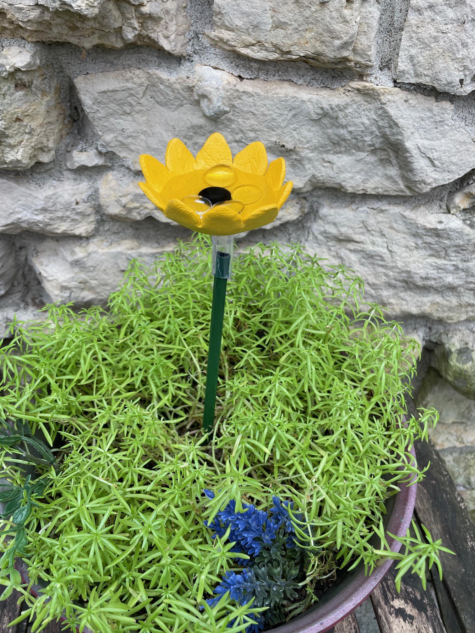 Size measures approx. 3.5” wide x 1” high x 1" deep. Item comes with a 12" metal rod so it’s ready to plant and enjoy!