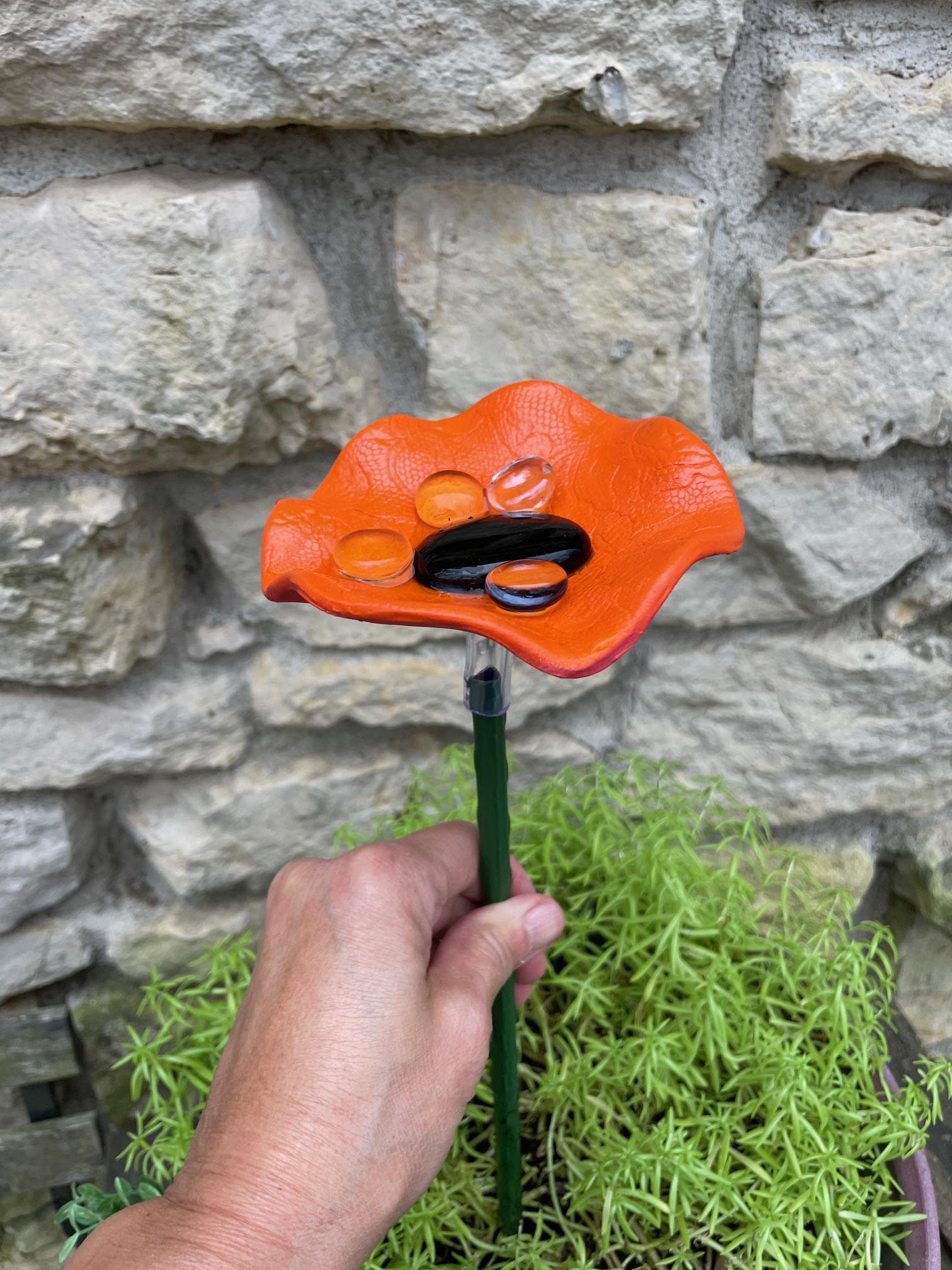 Handcrafted garden Flowers is made out of Stoneware clay.Once the clay is dry, the Whimsy Flowers are fired in my kiln to give them strength and durability.