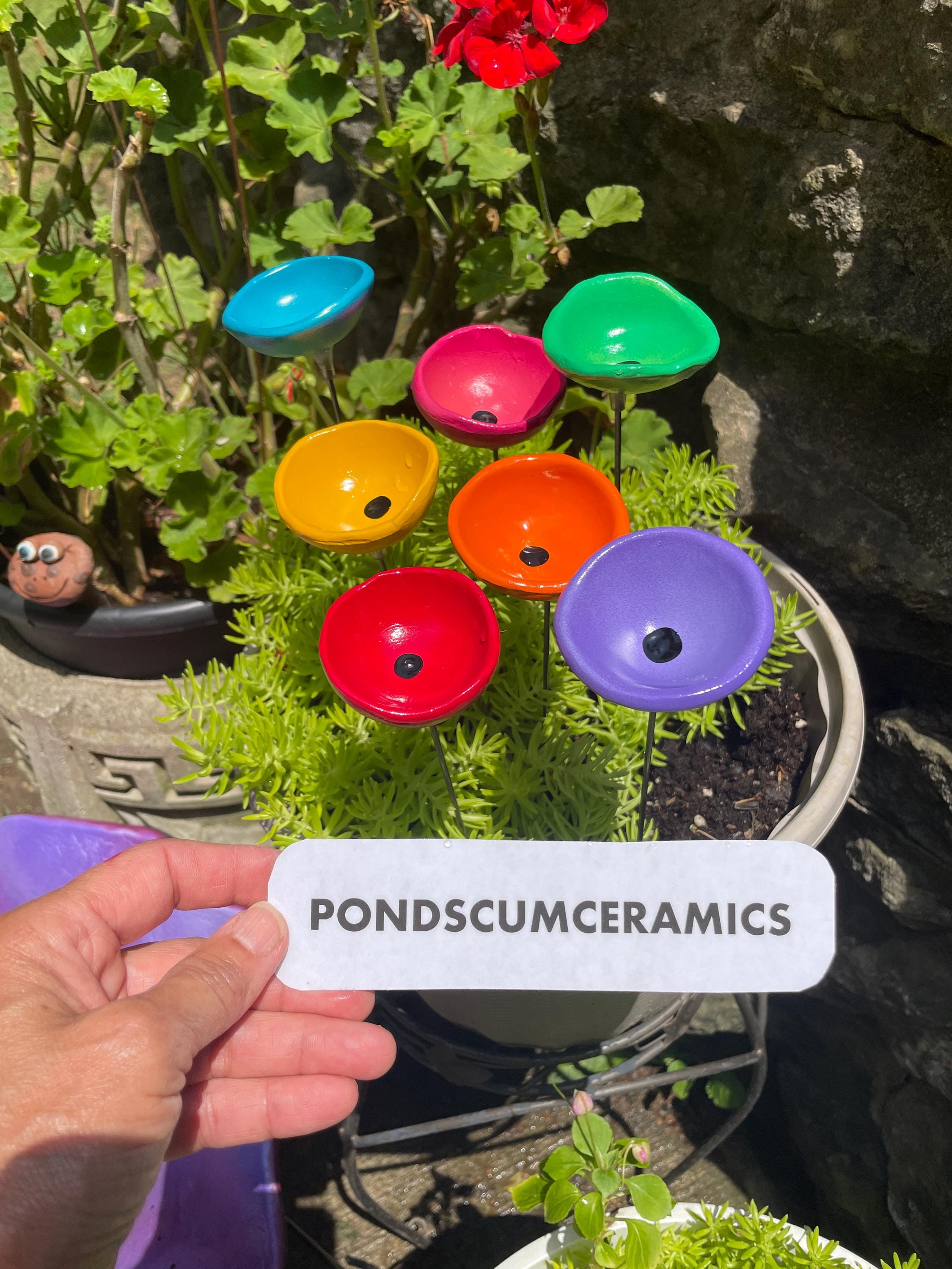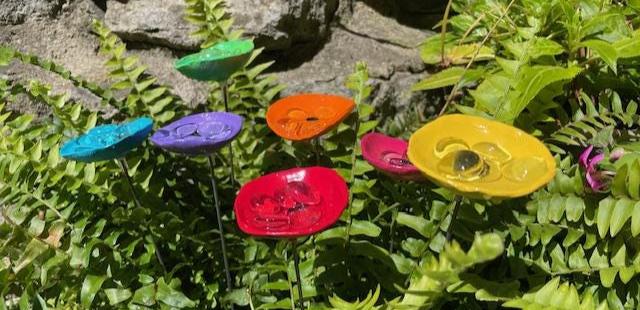 Handcrafted garden Flowers is made out of Stoneware clay.Once the clay is dry, the Whimsy Flowers are fired in my kiln to give them strength and durability.