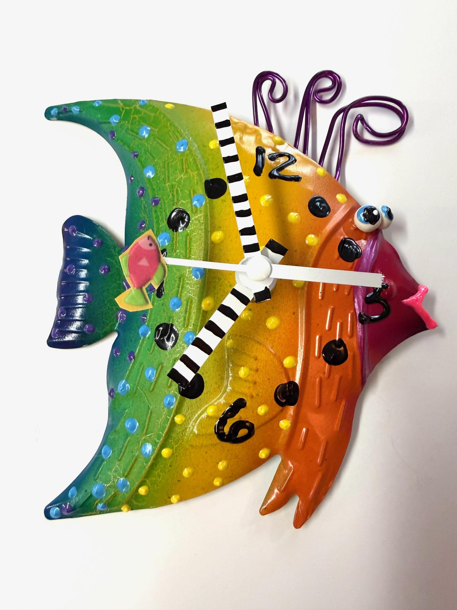 This clever little Angel Fish wall clock is made in my art studio in Fishers, Indiana.