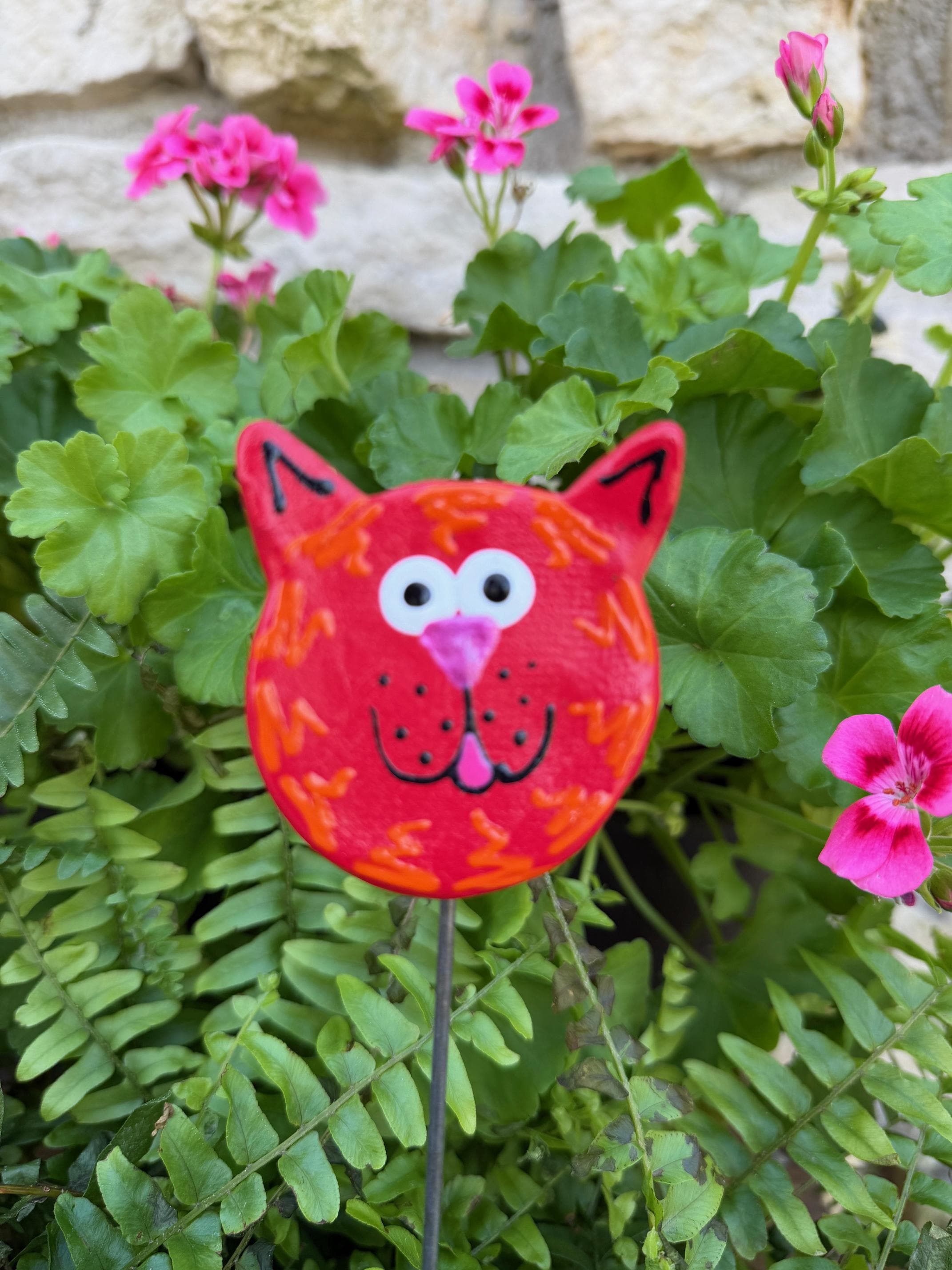 Each cat face is individually hand-formed from durable stoneware clay, kiln-fired, and carefully hand-painted in vibrant, multi-tonal detail. Sealed with a weatherproof gloss coating, it’s designed to bring long-lasting personality and joy to your outdoor space.