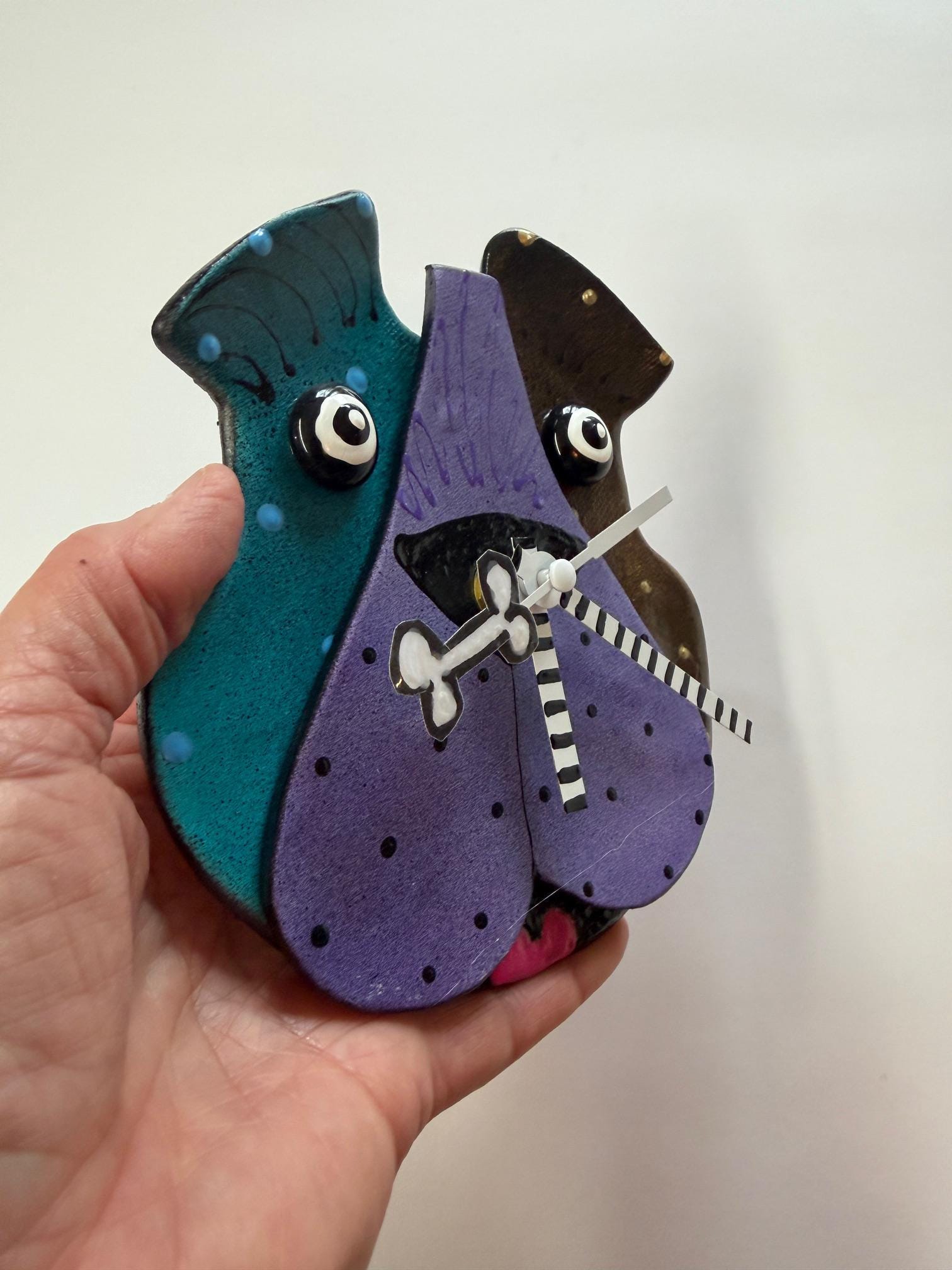This original design makes a fantastic gift for any dog lover or a fun addition to your own decor. Each clock is equipped with a top-quality quartz movement, tested for accuracy, and a large hanger on the back ensures easy installation. Embrace the charm of handmade art with this adorable clock, crafted by an artist who takes pride in creating pieces that bring joy and character to your home.