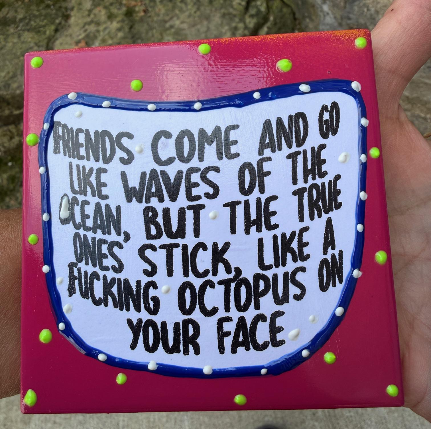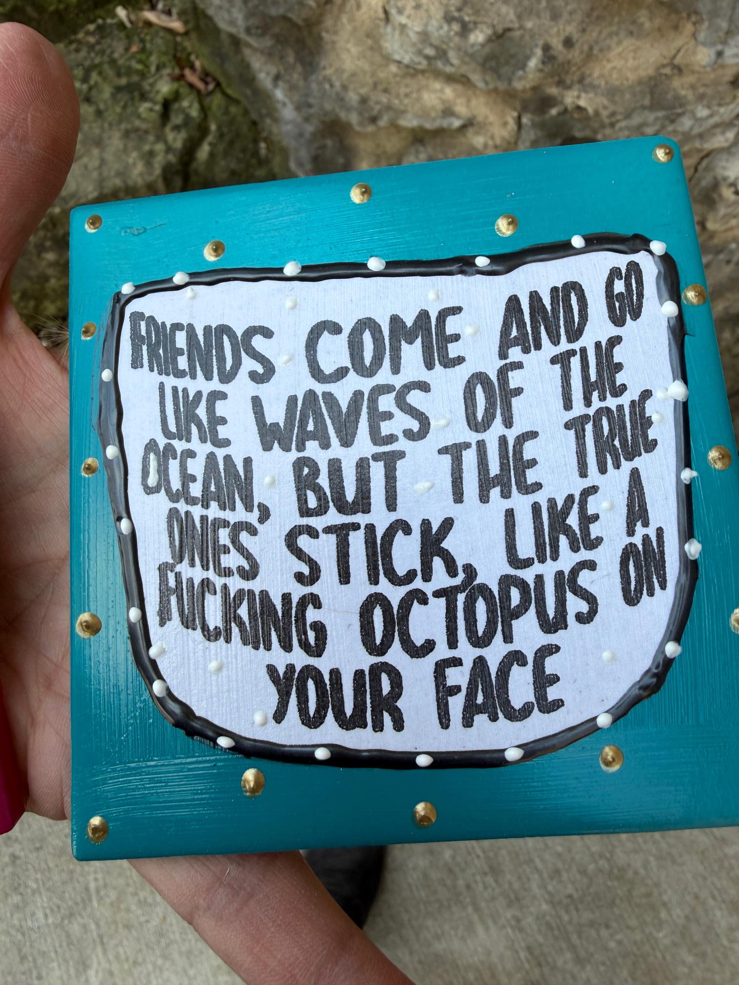 “Friends come and go like waves of the ocean, but the true one's stick, like a fucking octopus on your face."