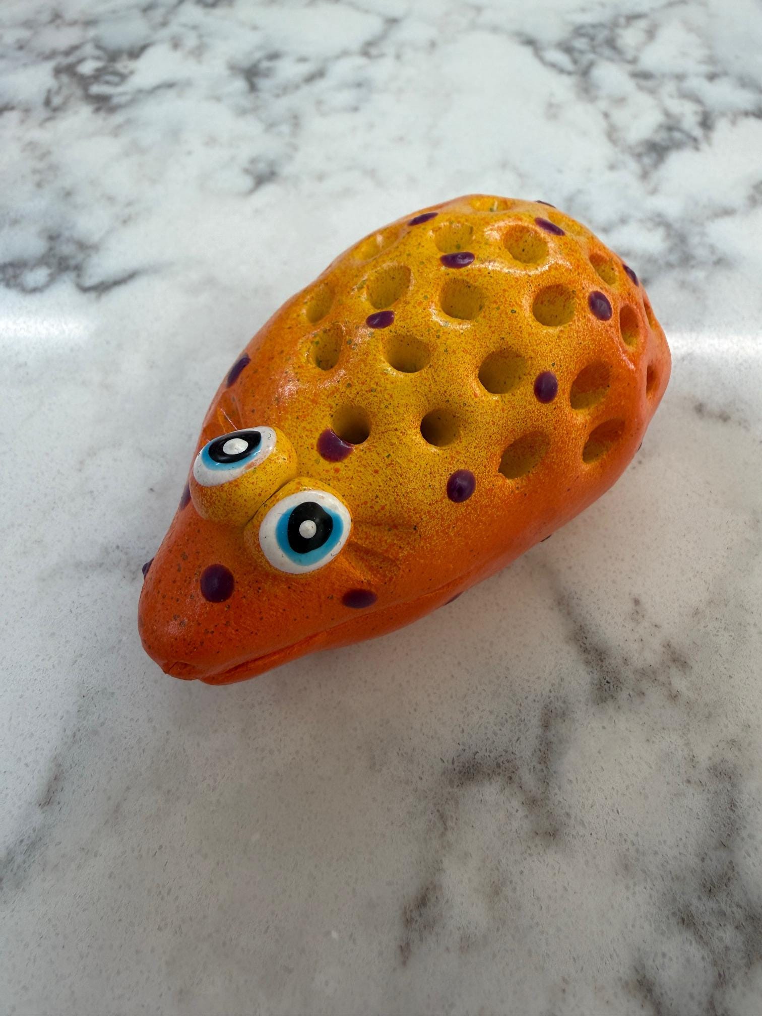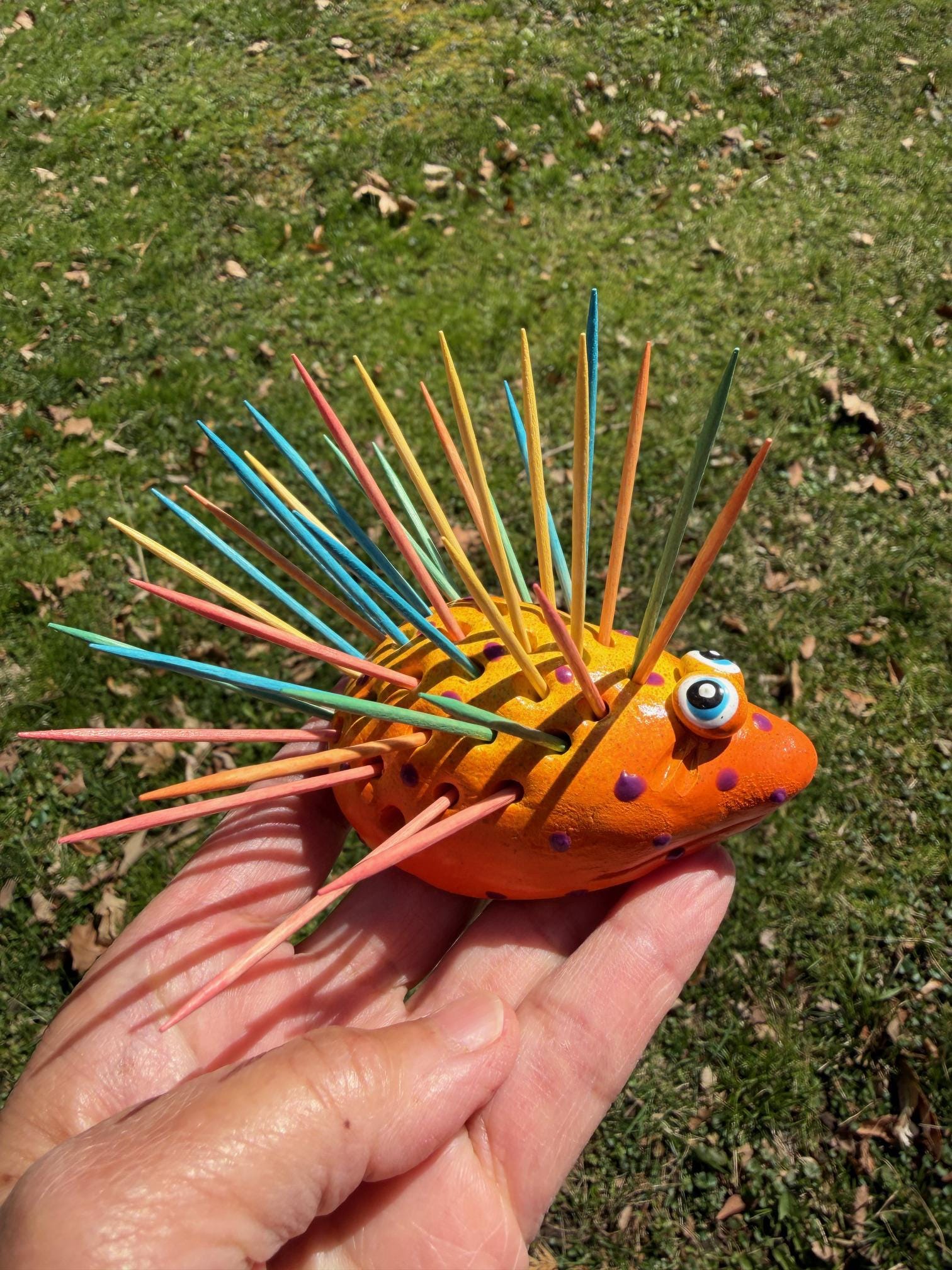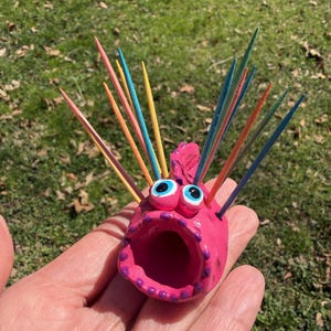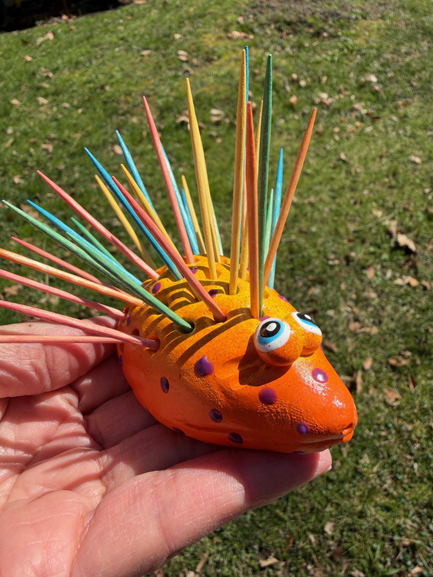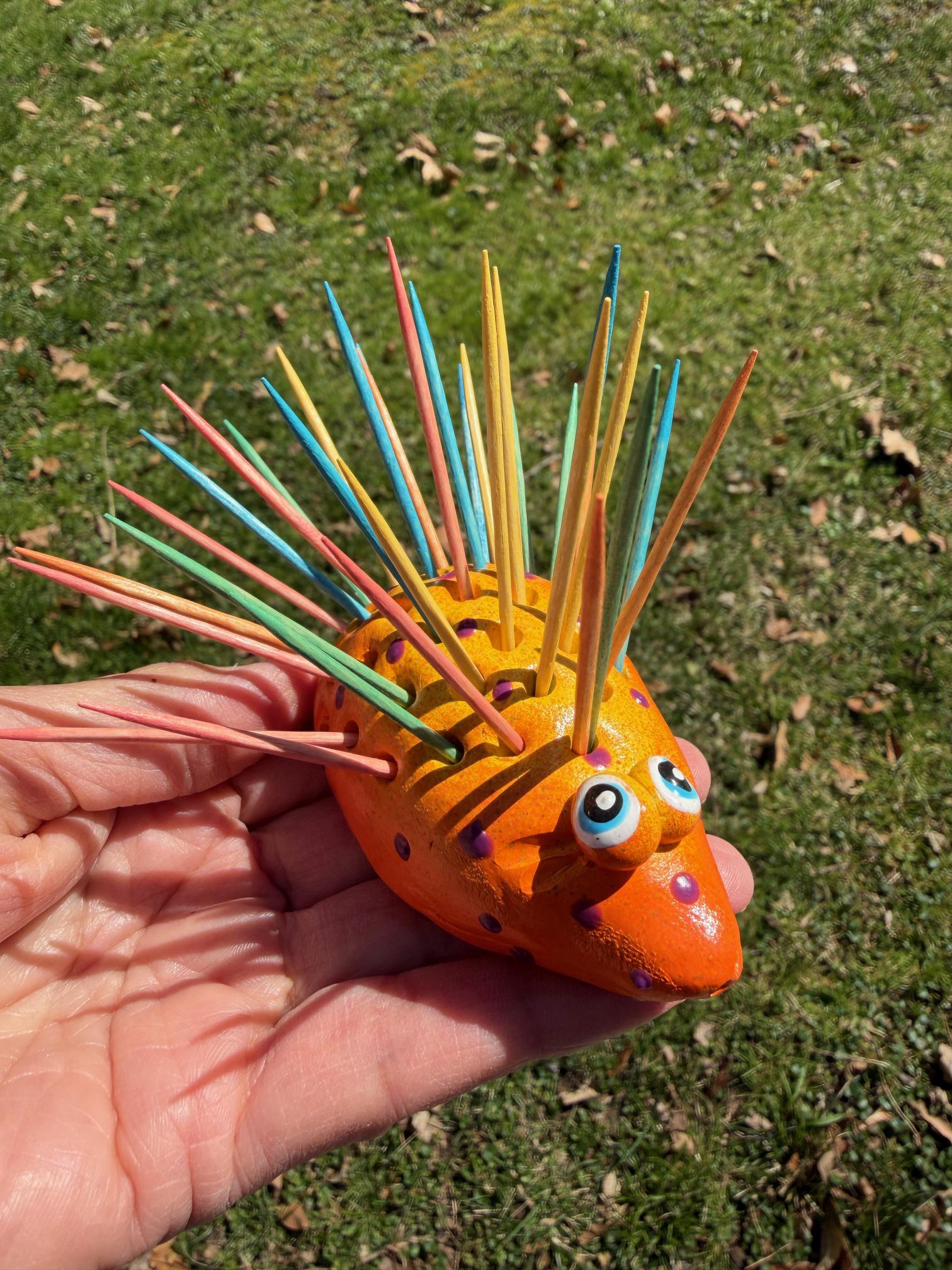 Hello and welcome to my store. Hold your toothpicks in style using this cute happy Hedgehog toothpick holder.