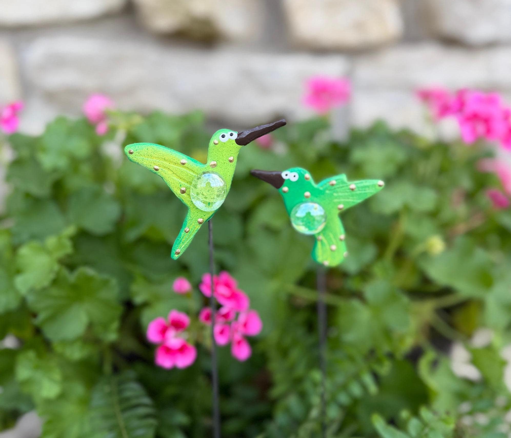 Brighten up your outdoor garden pots with these BRIGHT Ceramic Hummingbirds.