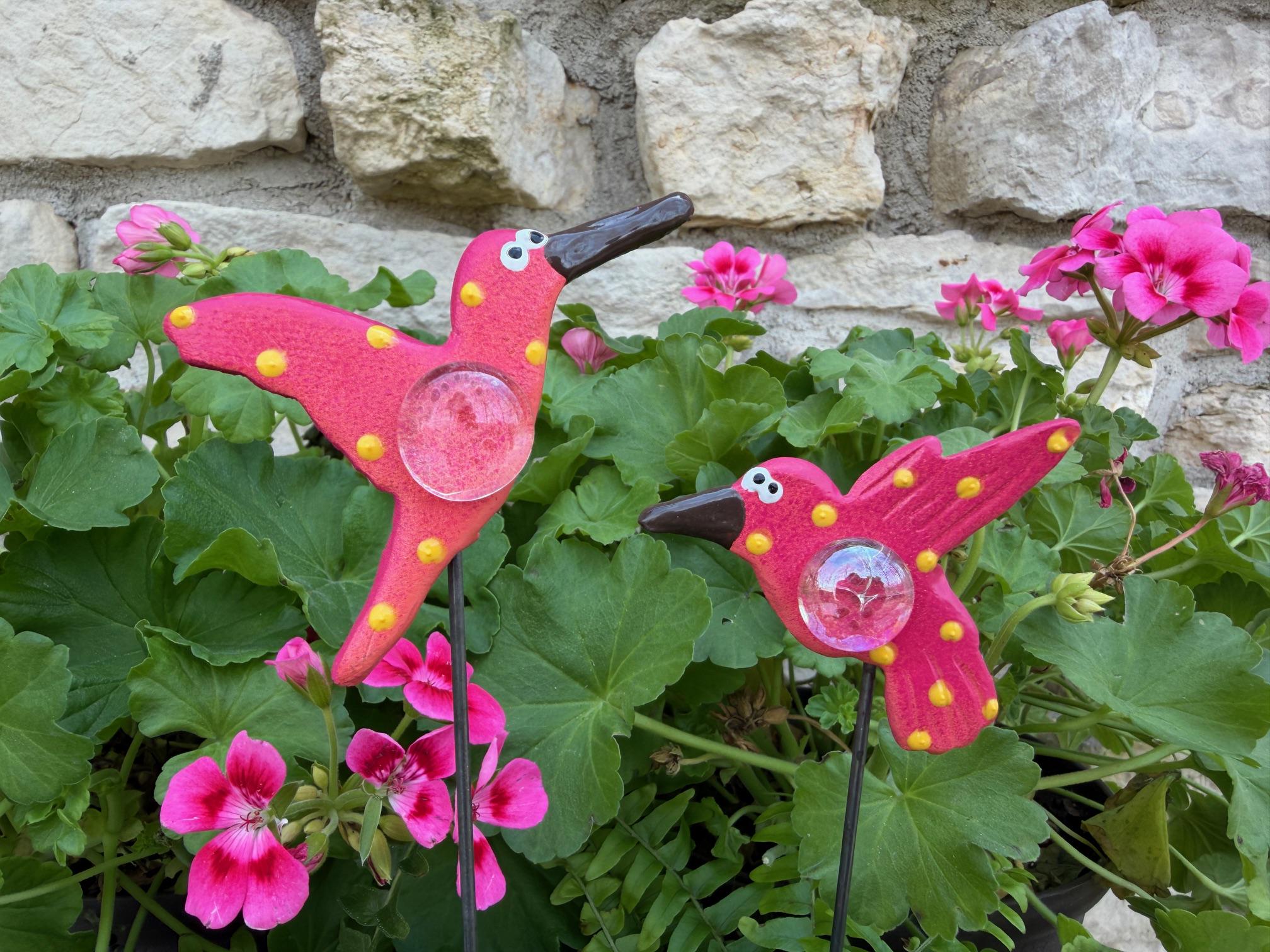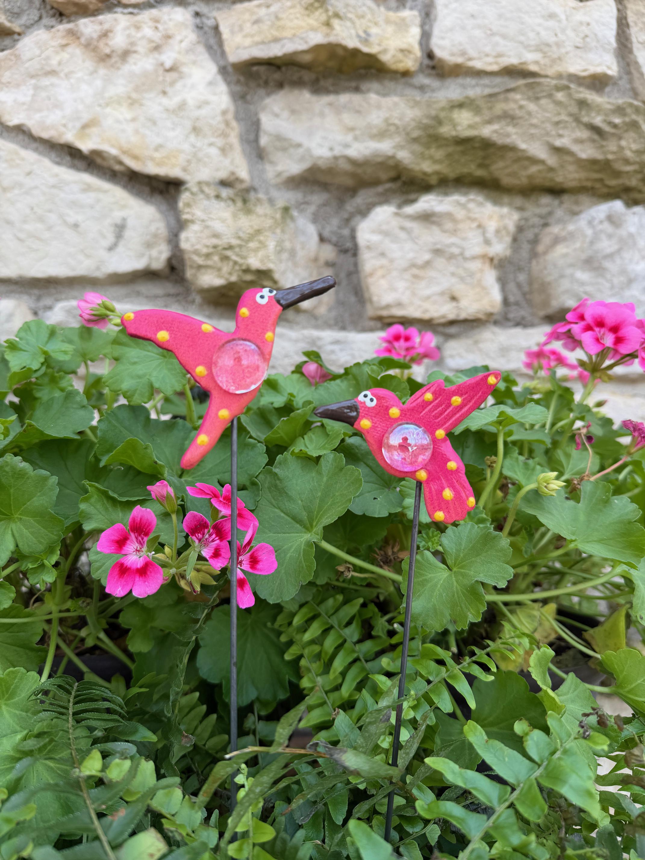 Brighten up your outdoor garden pots with these BRIGHT Ceramic Hummingbirds.