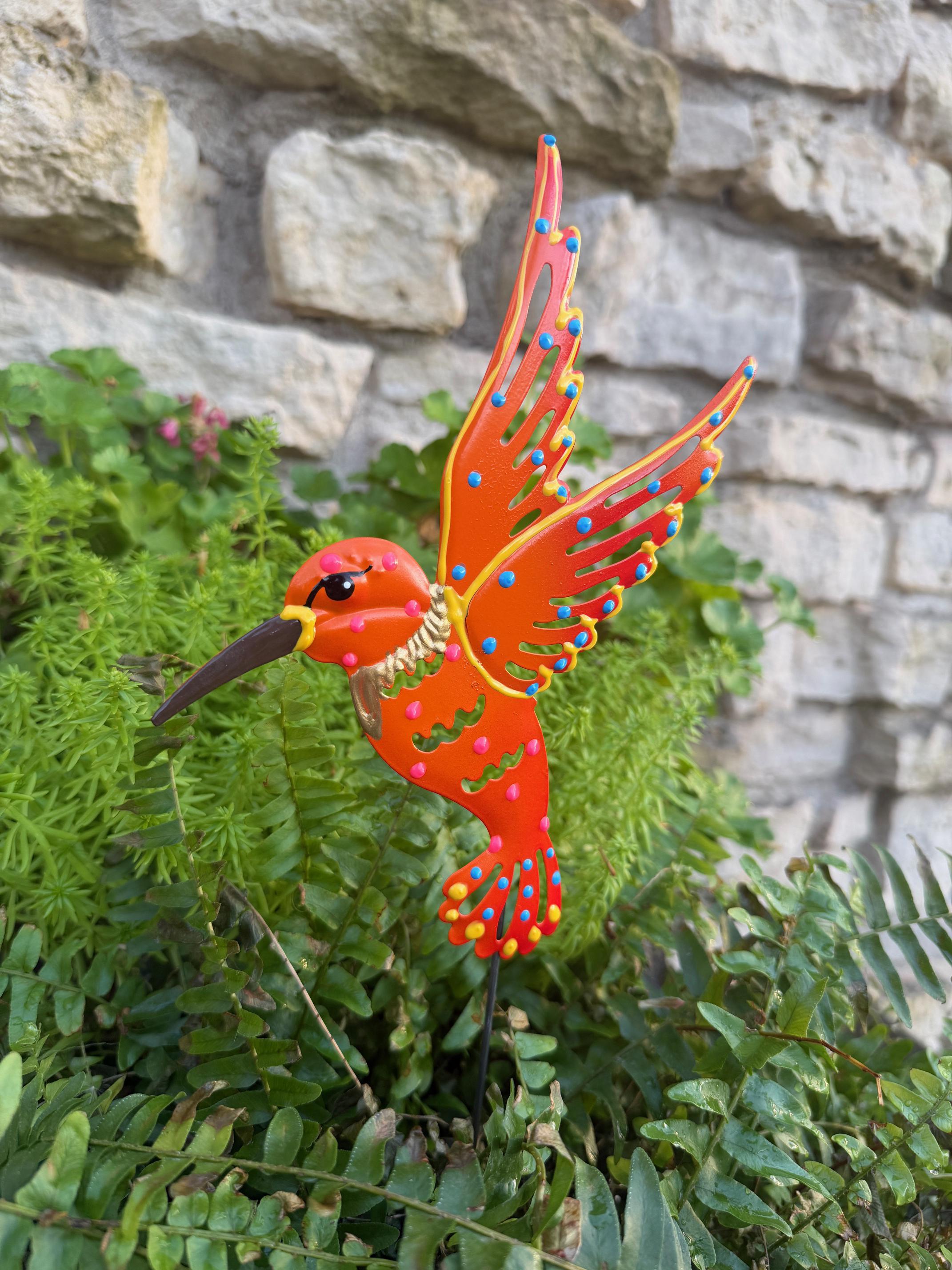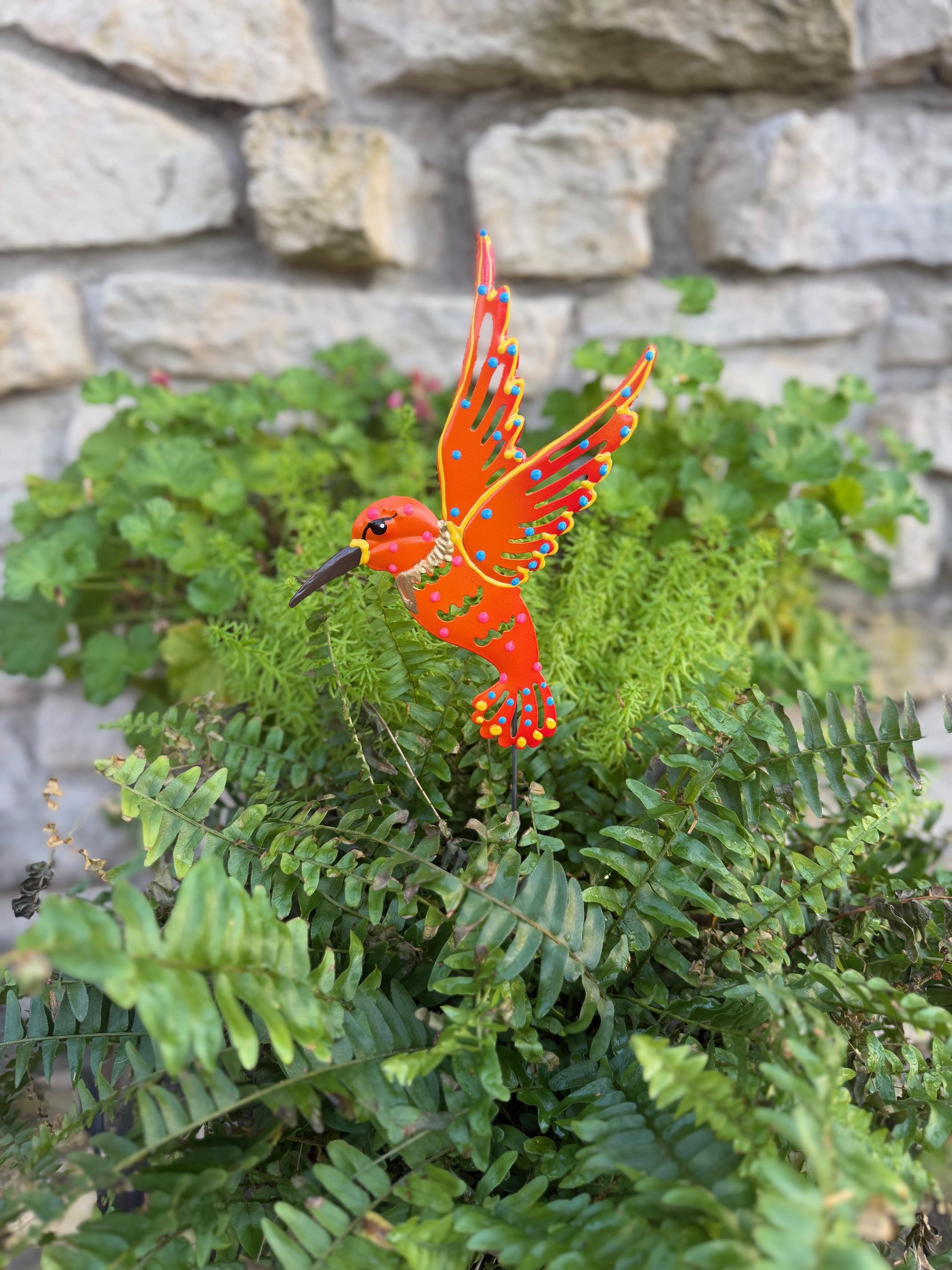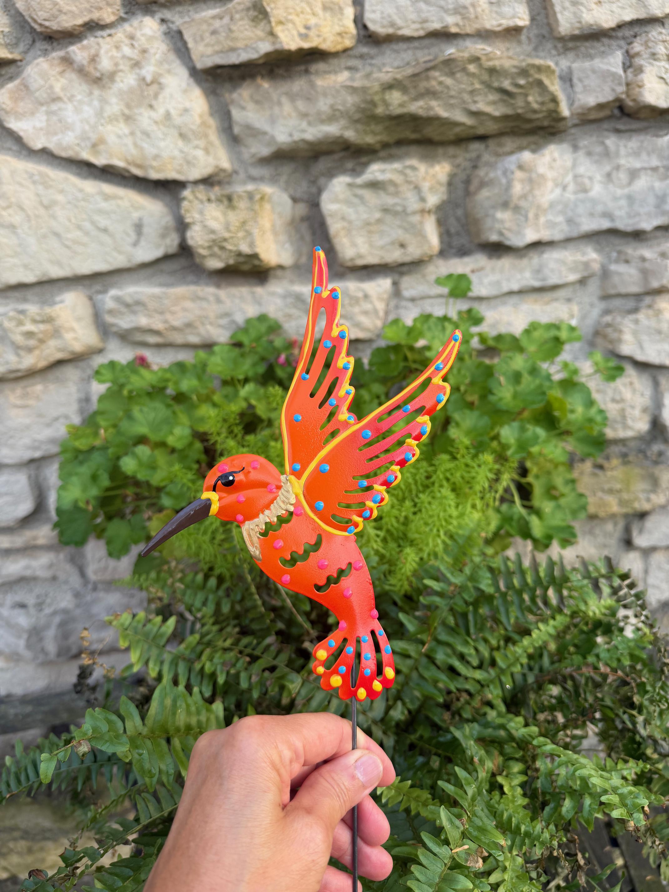 Orange Metal Hummingbird Garden Stake,Garden Decor, Garden Art,Garden Gift For Moms,Hummingbird Decor,Hummingbird Lover Gift