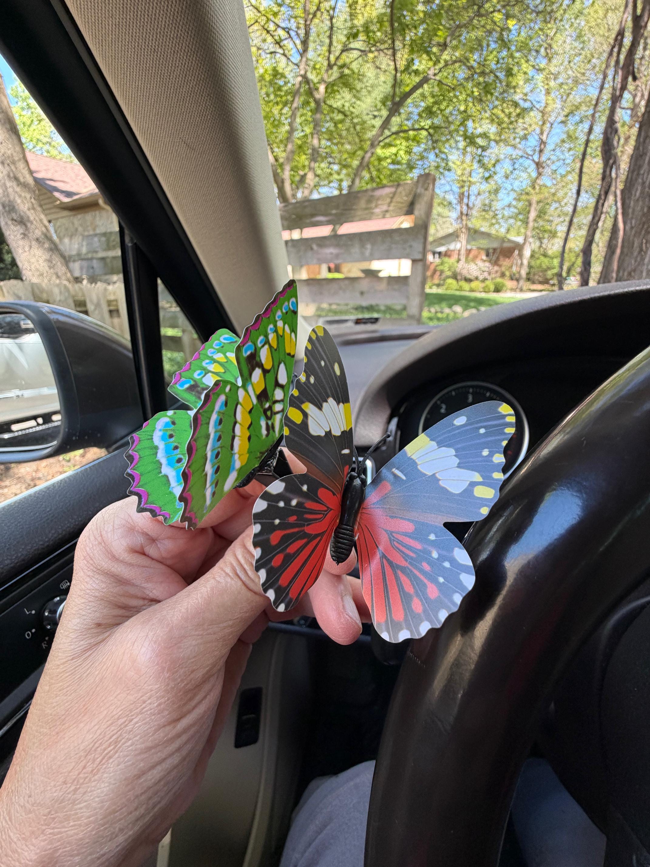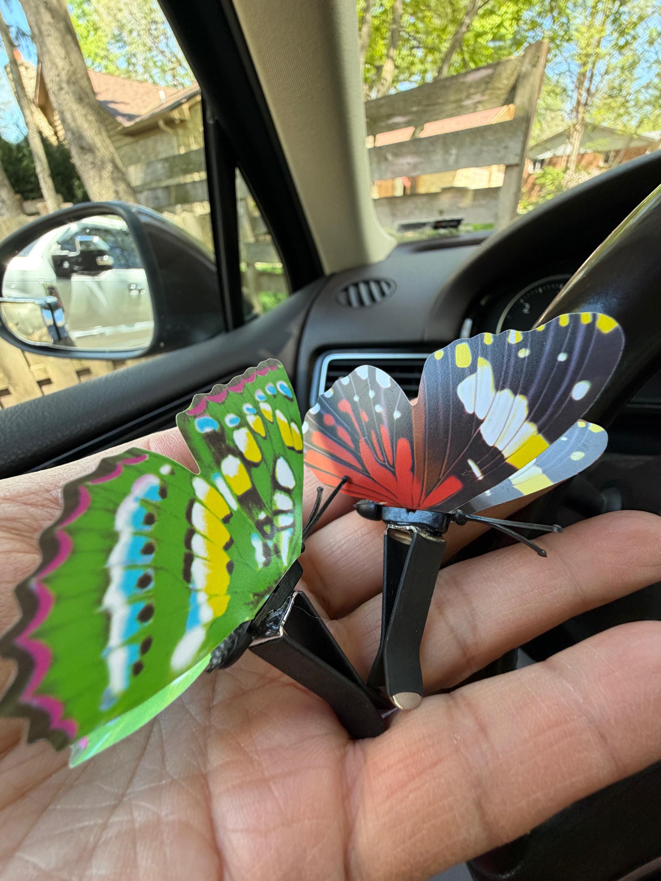 Each Butterfly vent clip measures approximately 2 inches in width, ensuring they gracefully adorn your car's air vents without overwhelming the space. Please note that since every single one of these butterfly clips is lovingly handcrafted, there might be slight variations in size and appearance, making each piece a unique work of art.