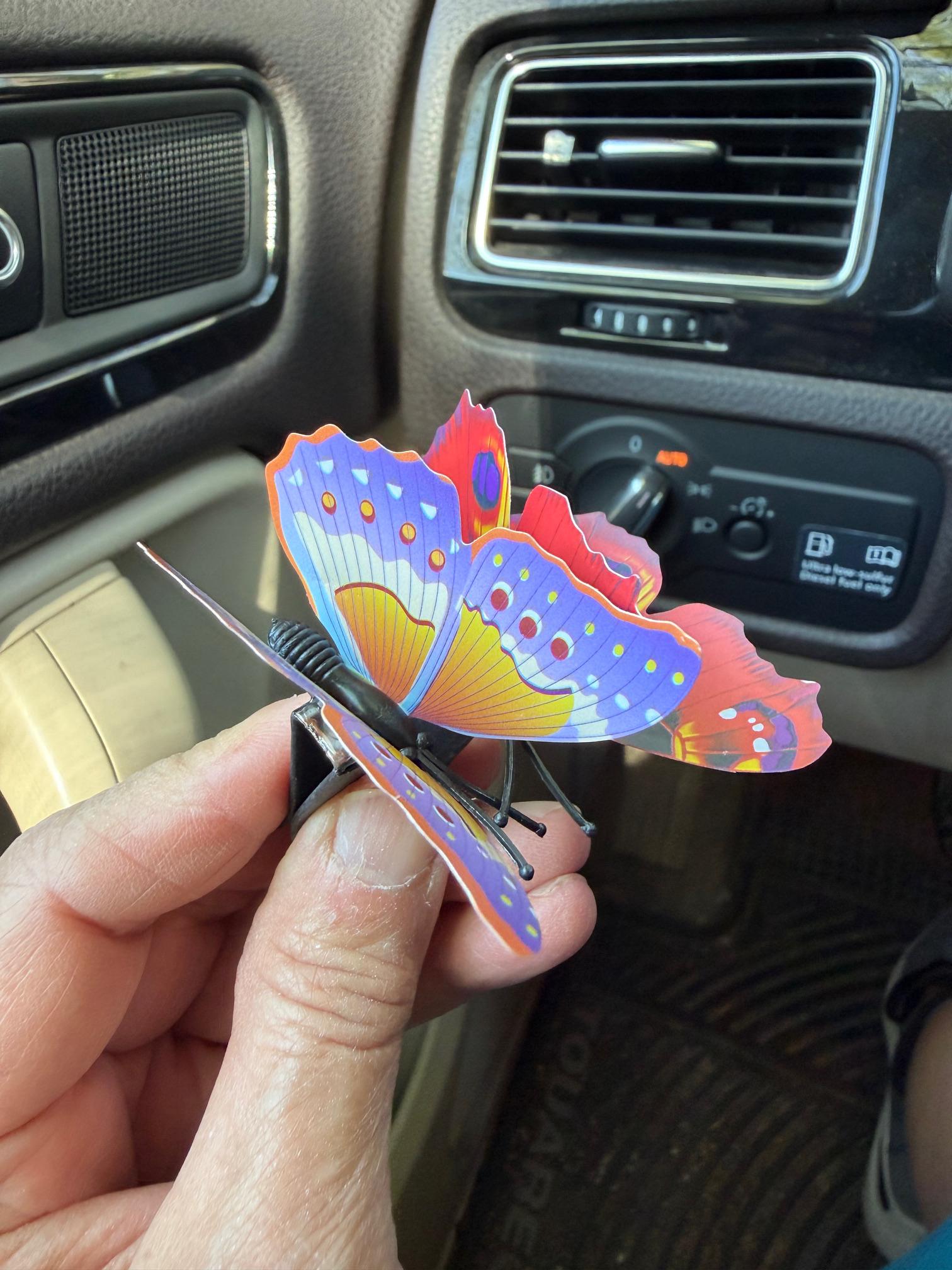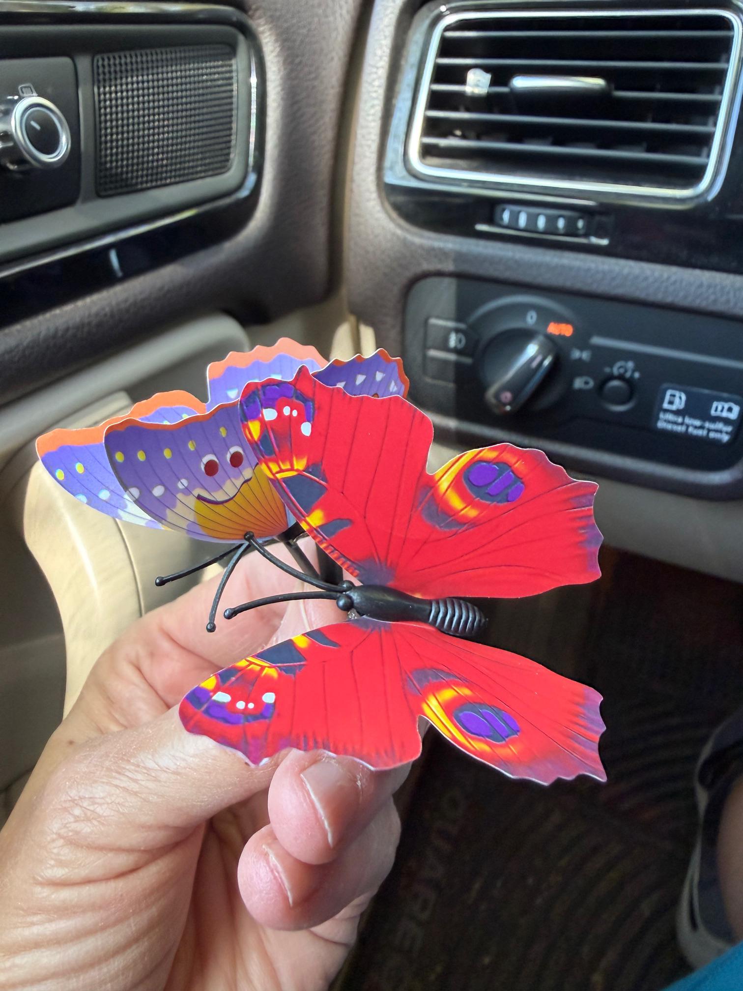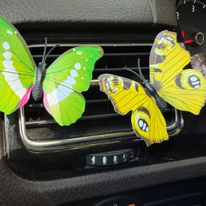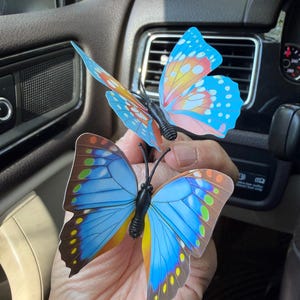 Each Butterfly vent clip measures approximately 2 inches in width, ensuring they gracefully adorn your car's air vents without overwhelming the space. Please note that since every single one of these butterfly clips is lovingly handcrafted, there might be slight variations in size and appearance, making each piece a unique work of art.