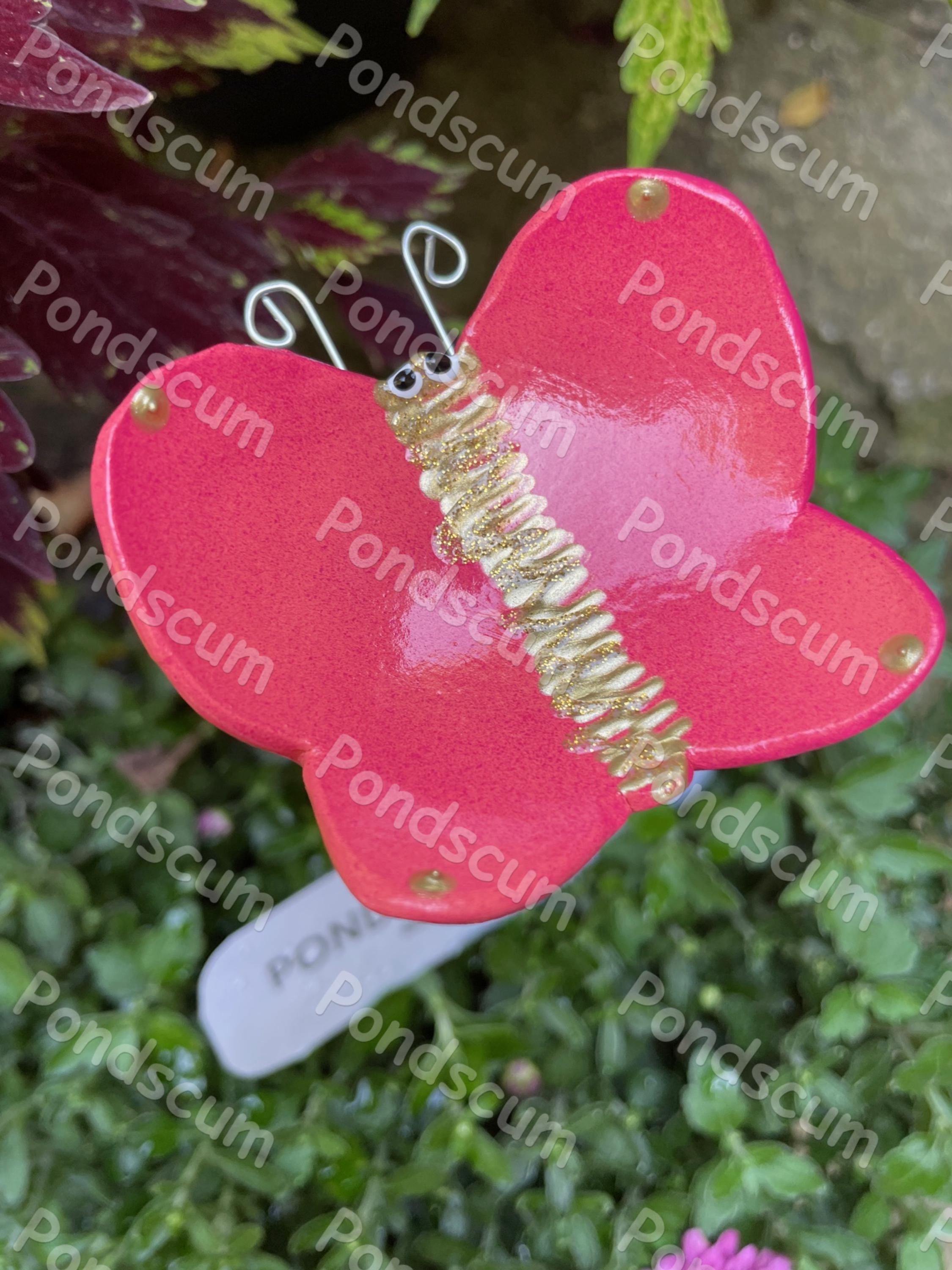 Pink Butterfly Puddler Bee Watering Station – Ceramic Bee Bath Garden Stake – Pollinator Safe Water Feeder – Whimsical Handmade Garden Decor