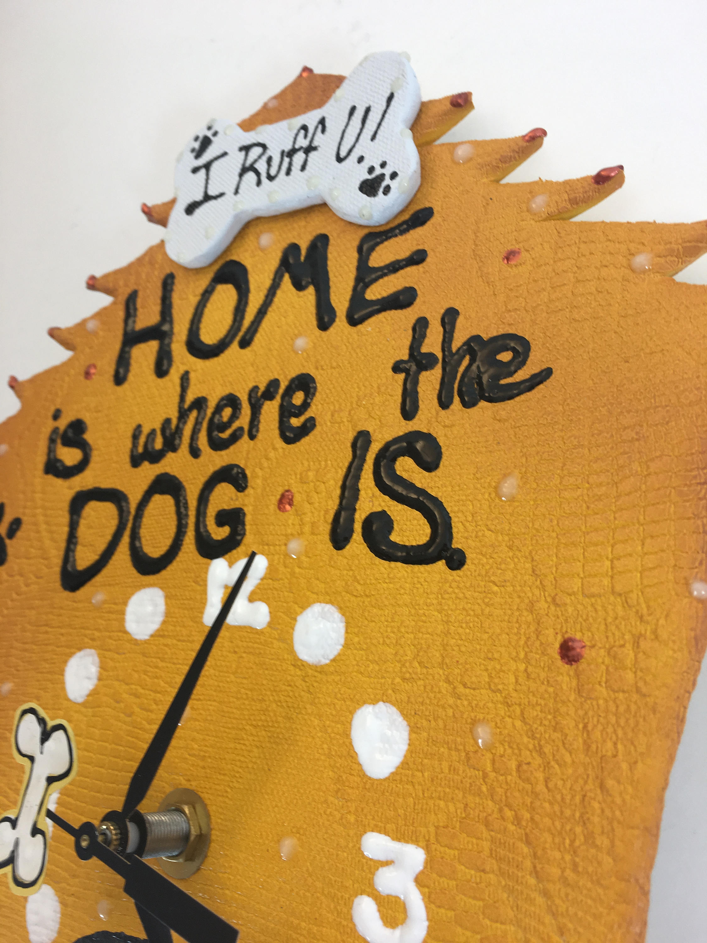 Look closely...this very happy dog clock has a bone for the second-hand.