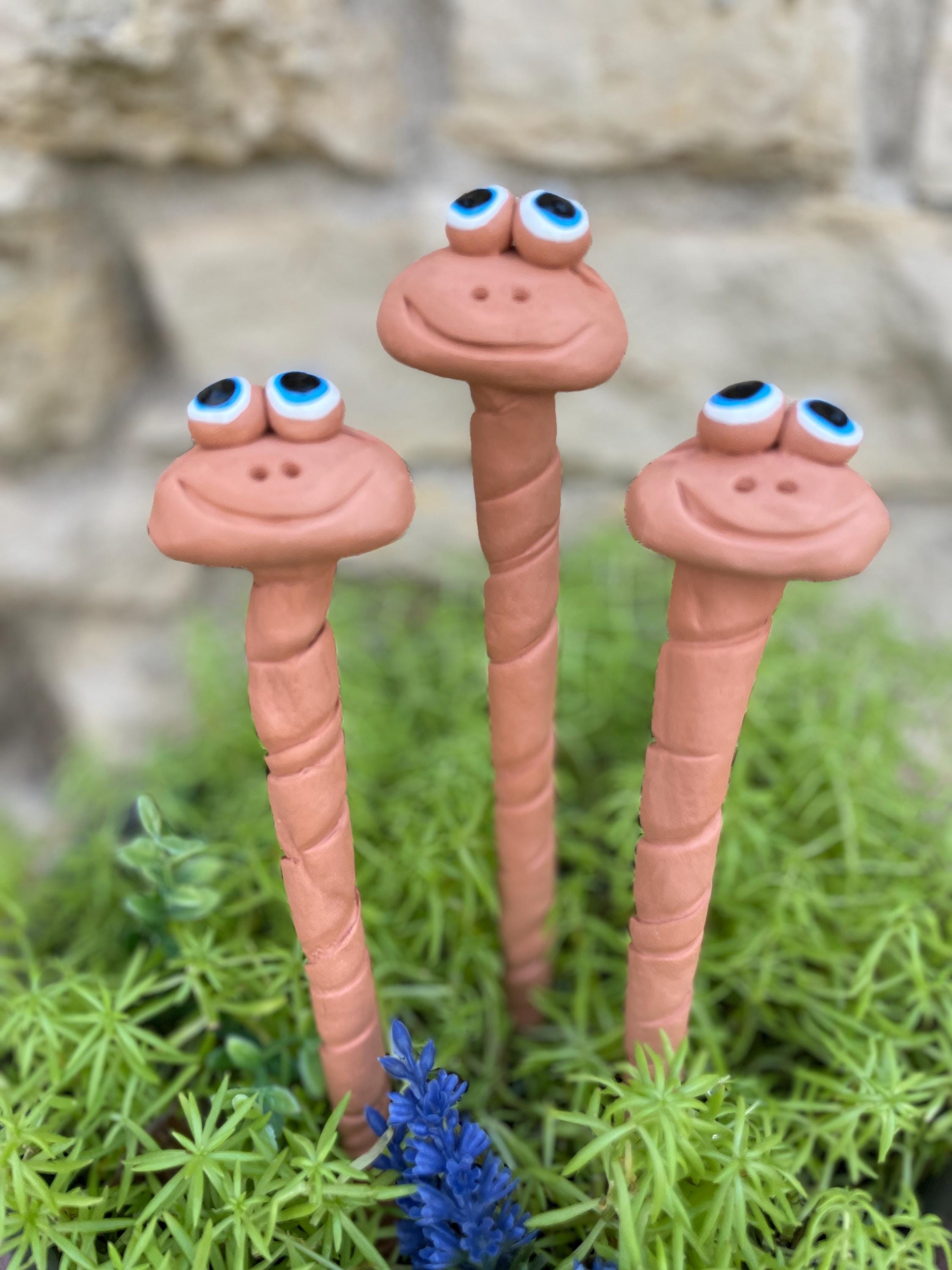 You will receive Three Handmade 8 inch'' Terracotta Ceramic Garden Worms.