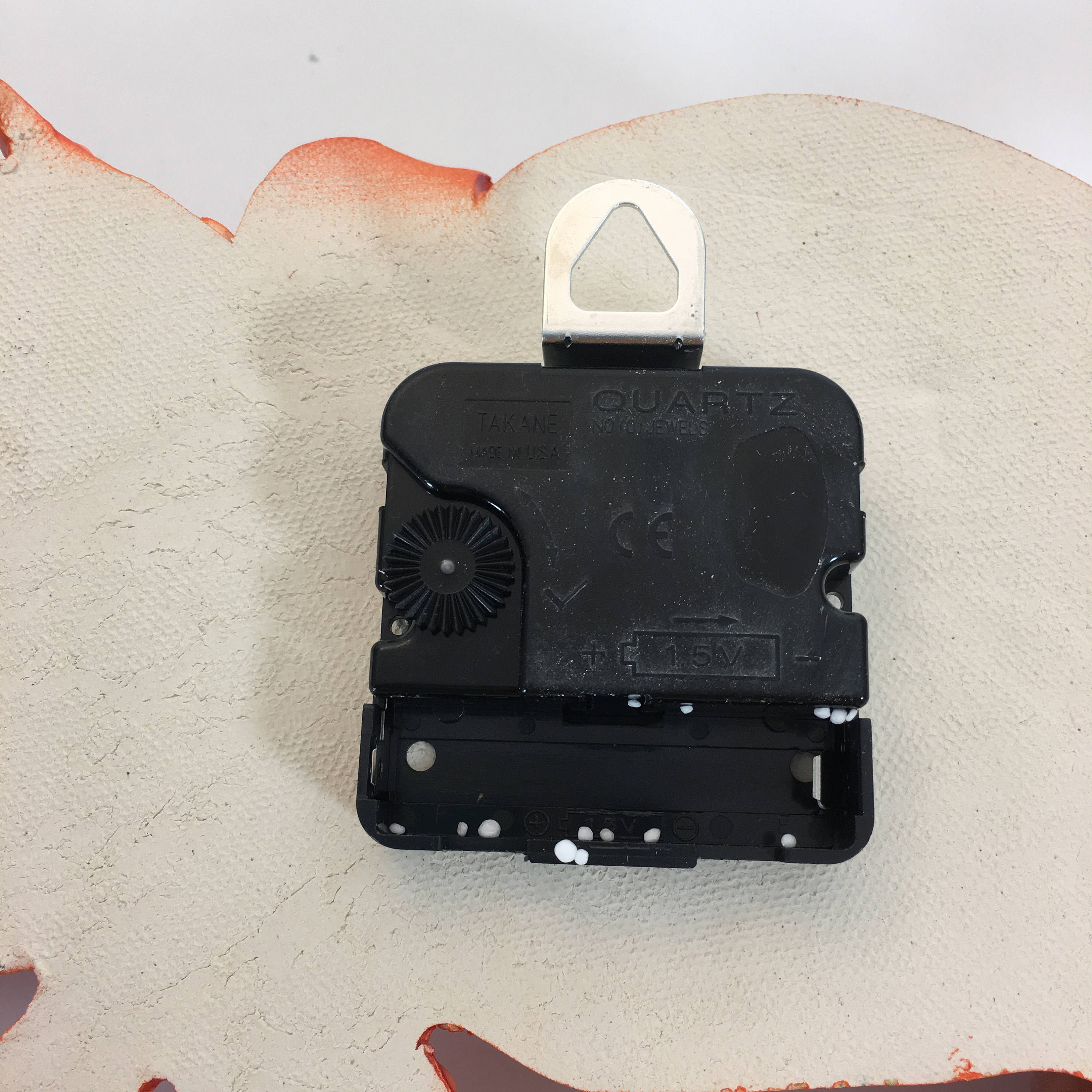 Dimensions...13 inches wide by 6 inches tall. The clock is assembled with a new quartz clock movement. The clock takes one "AA" battery (not included).