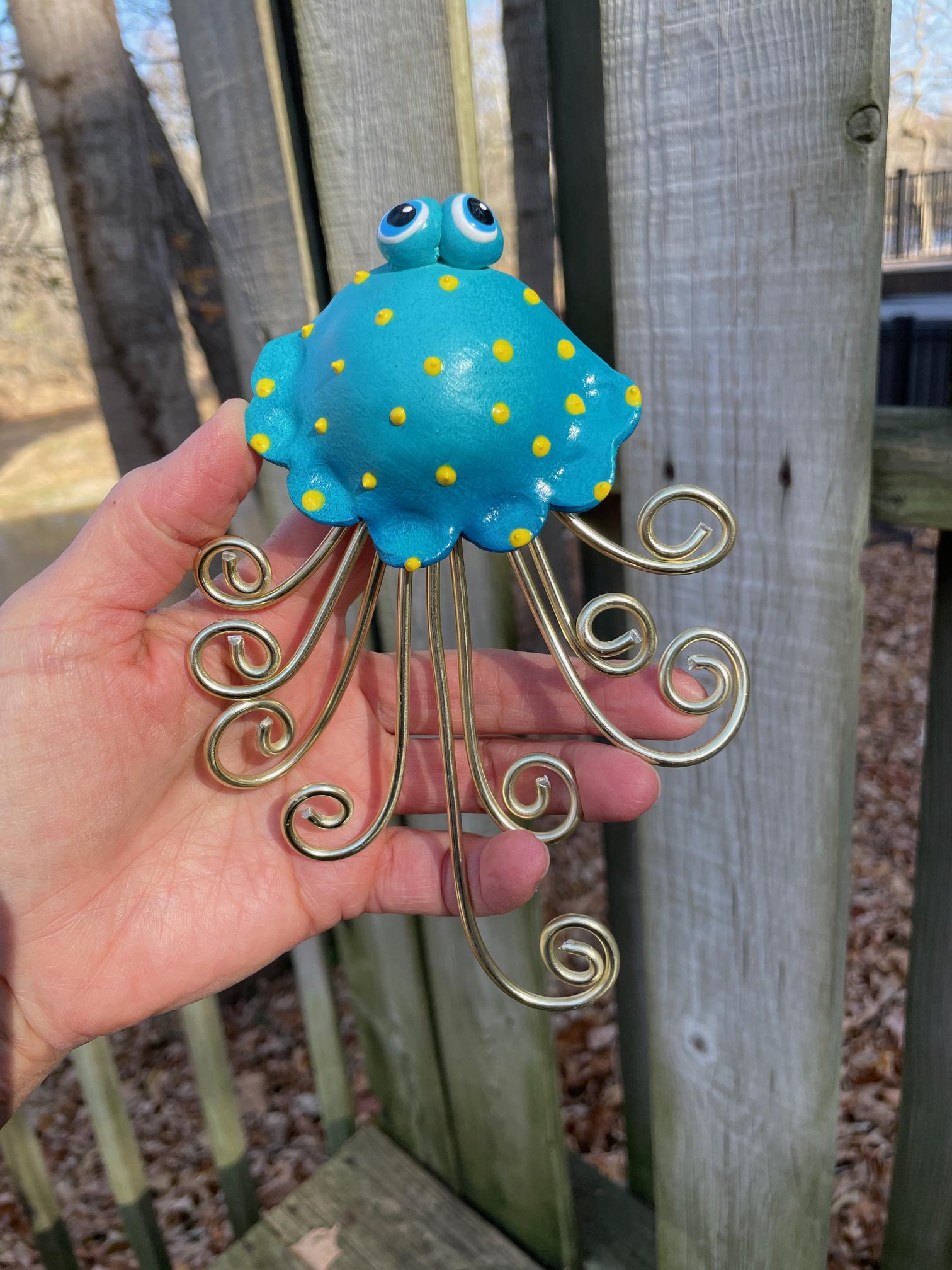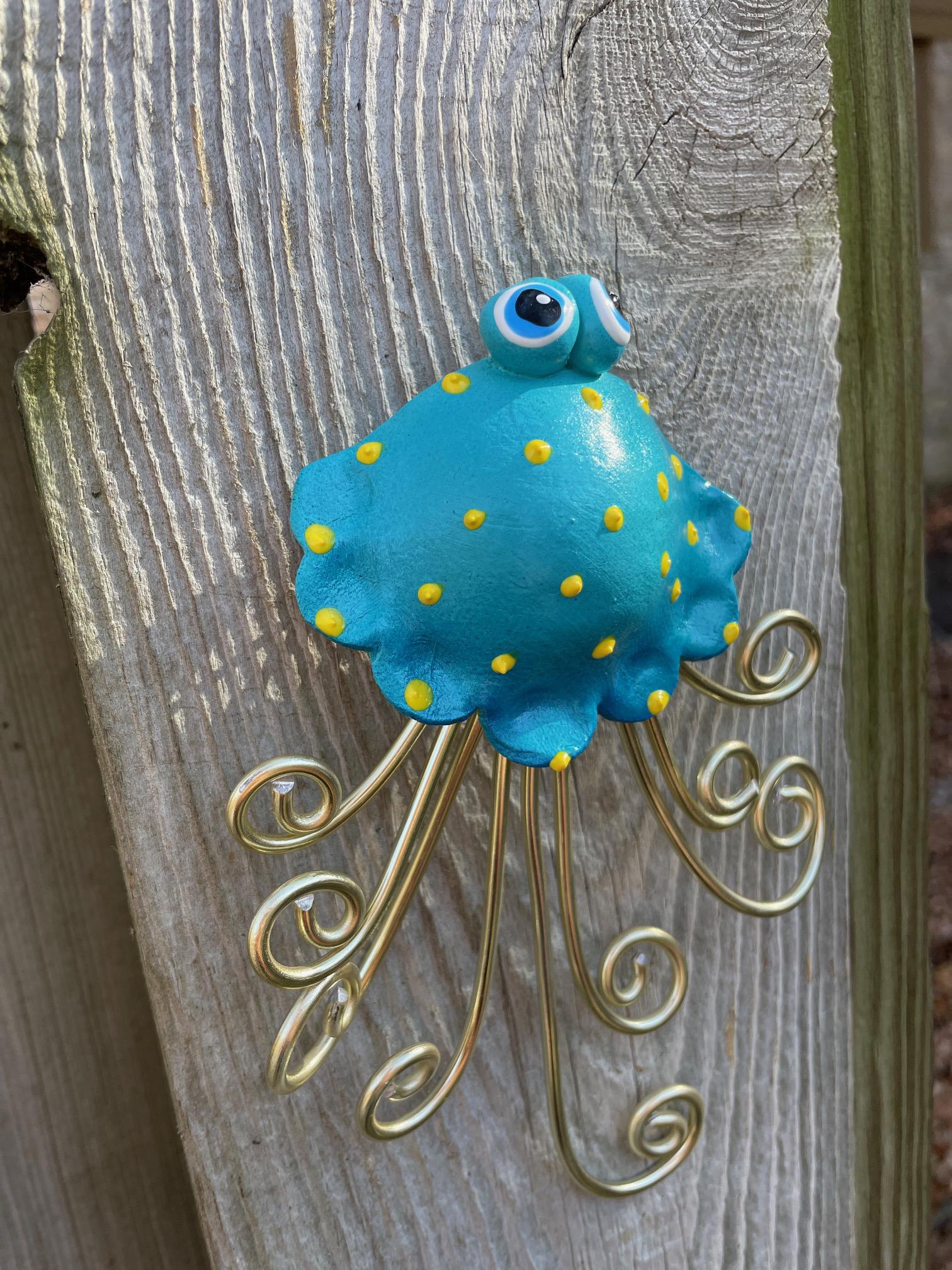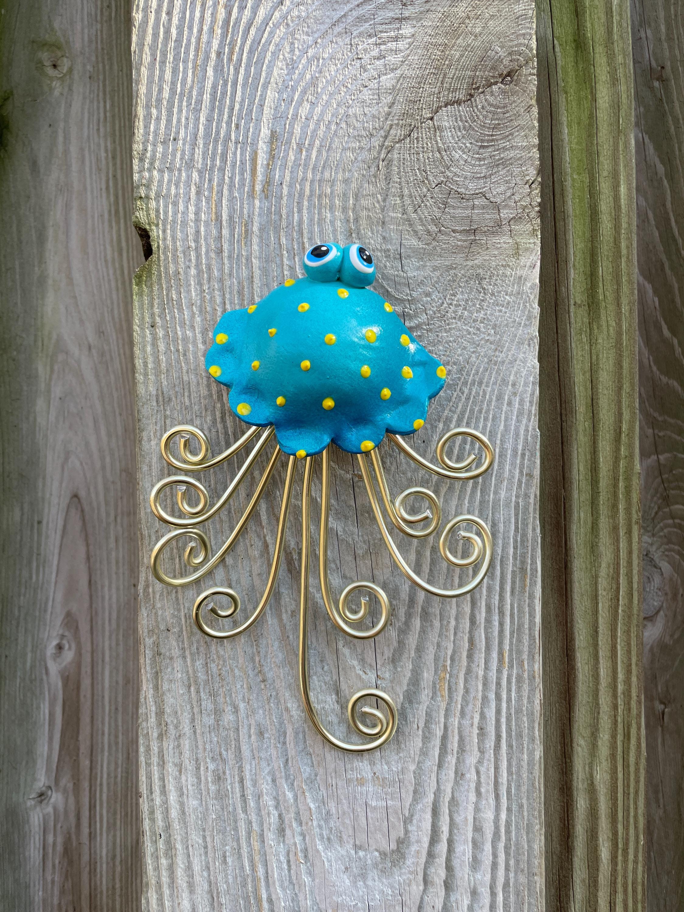 Handcrafted WALL Jellyfish is made out of Stoneware Clay and Wire. Once the clay is dry, the Whimsy Tentacles are fired in my kiln. As they're all handmade, no two are exactly alike. Imperfections are part of the charm!