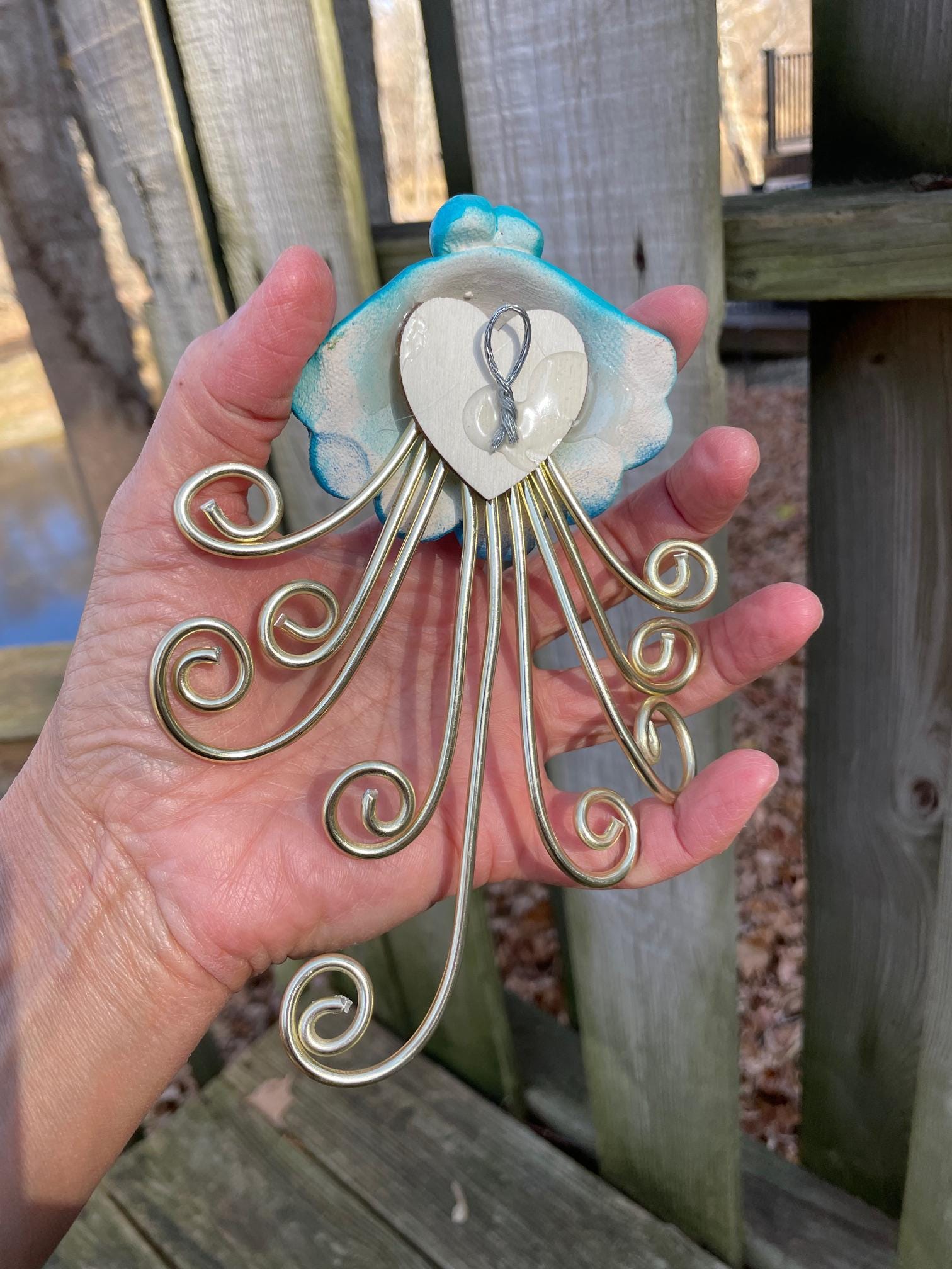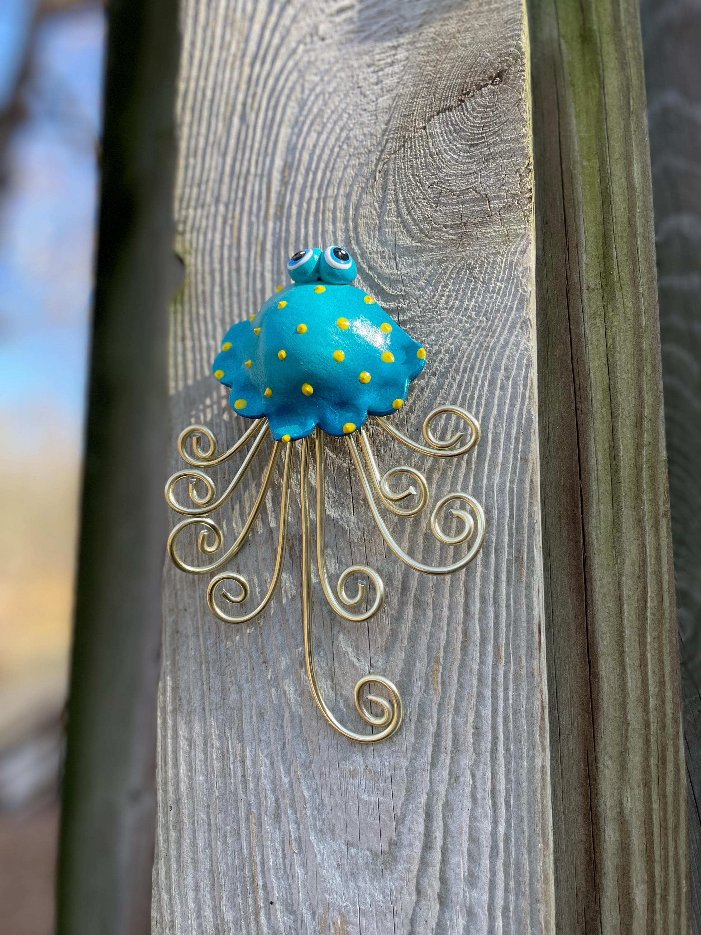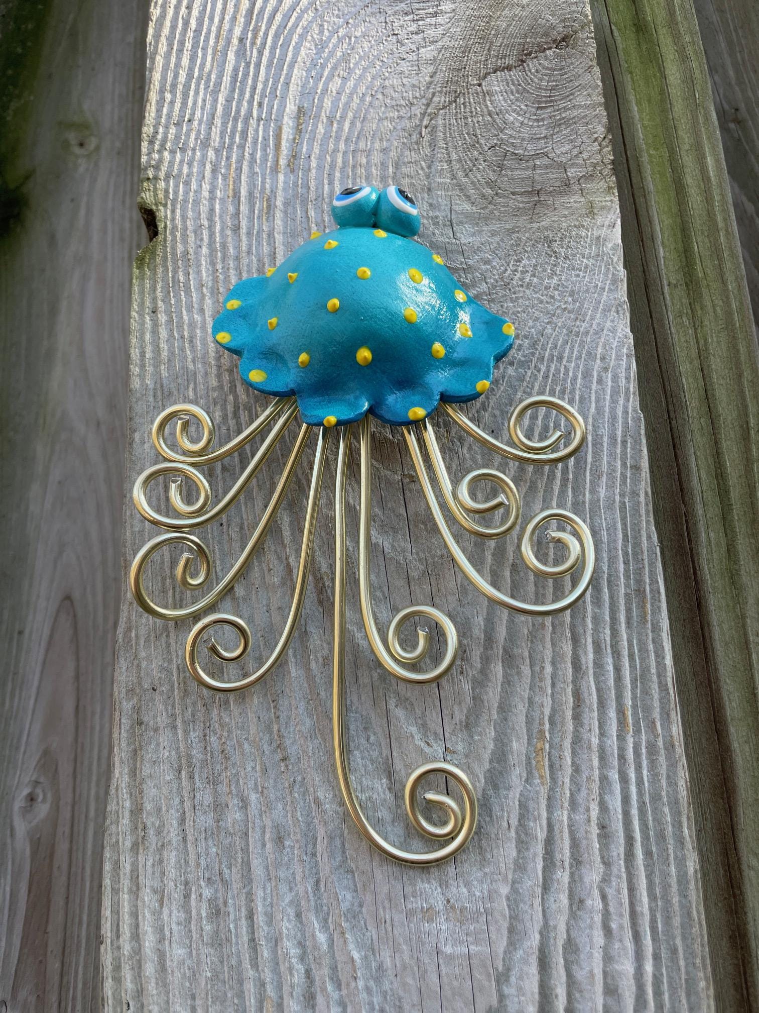 Handcrafted WALL Jellyfish is made out of Stoneware Clay and Wire. Once the clay is dry, the Whimsy Tentacles are fired in my kiln. As they're all handmade, no two are exactly alike. Imperfections are part of the charm!