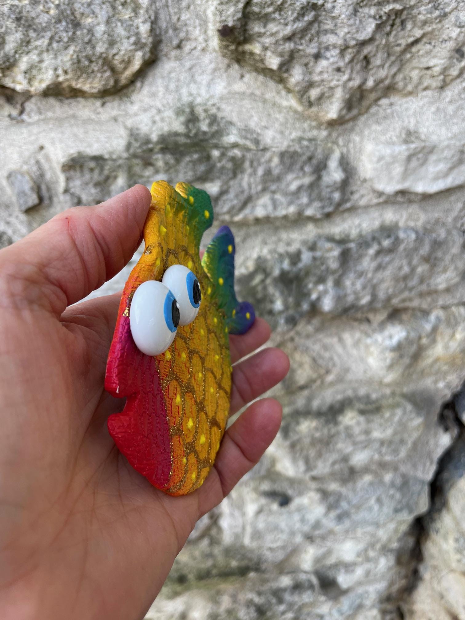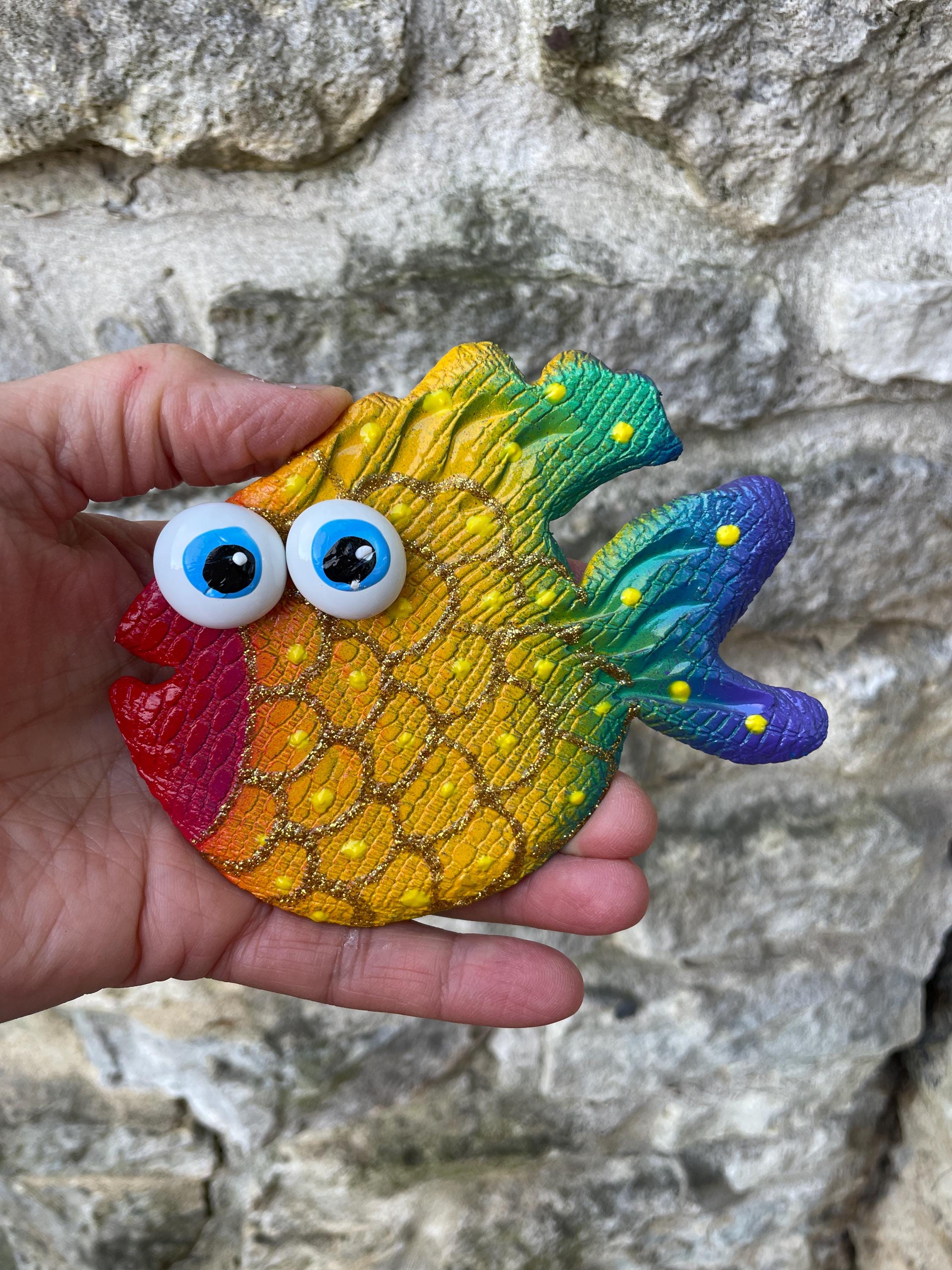 The ceramic fish is made from white stoneware clay, then Fired in a Kiln to give them strength and durability.